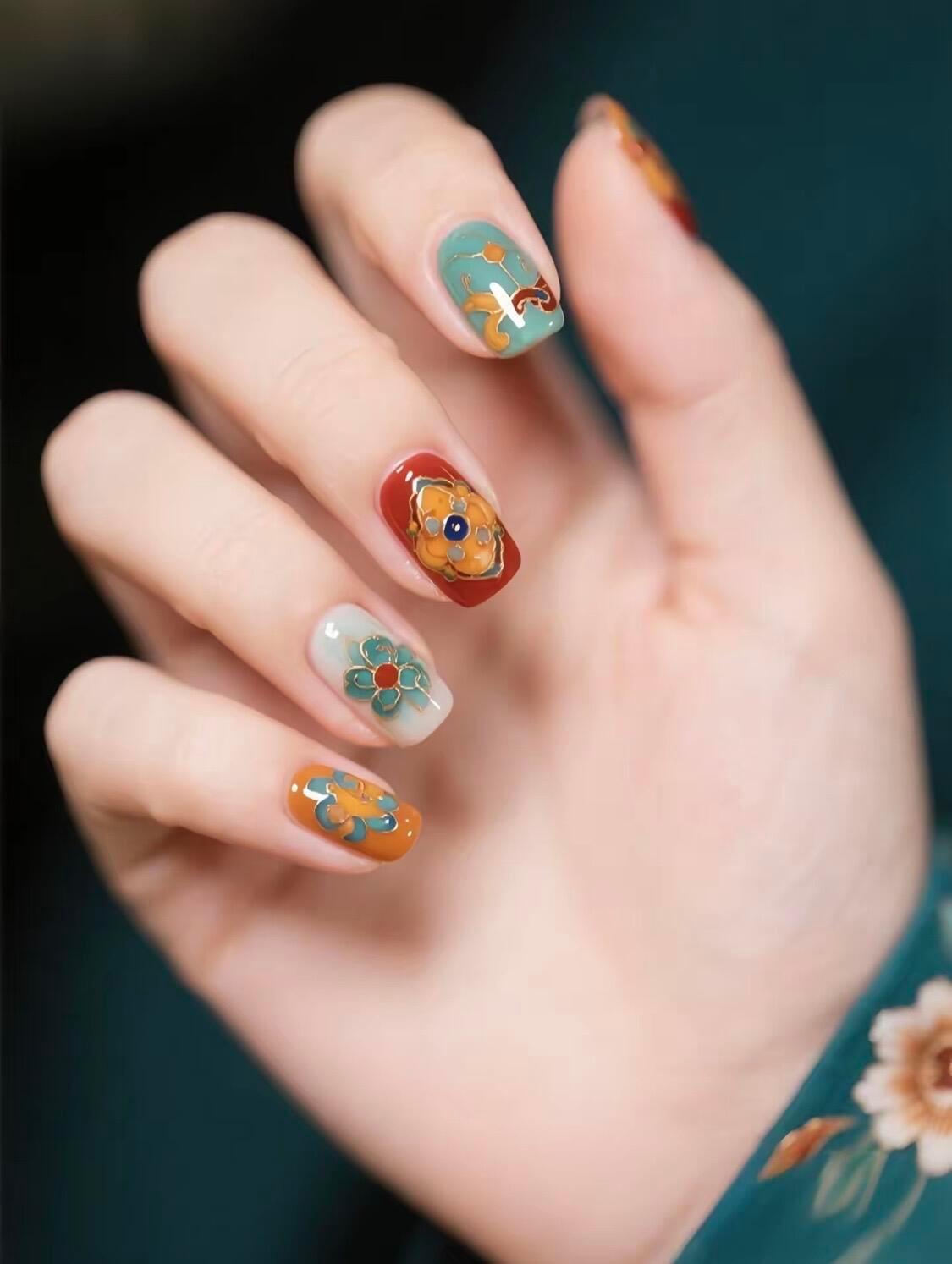 复古国风美甲💅🏻!太喜欢啦~