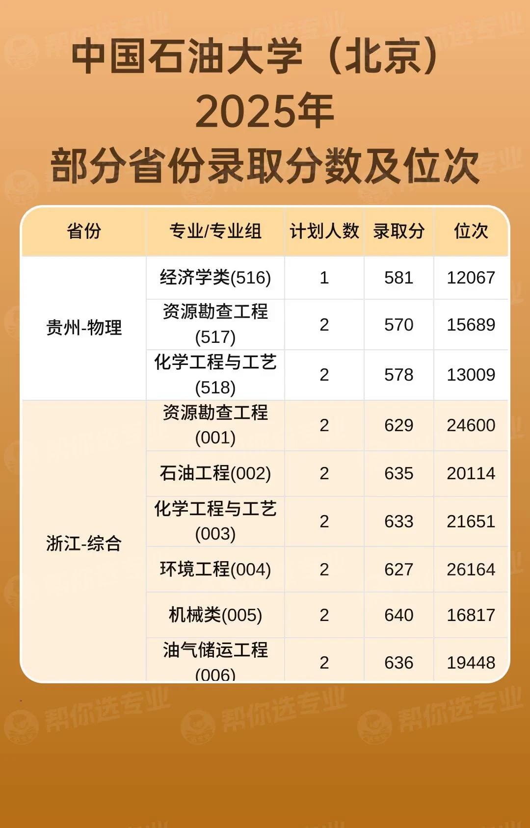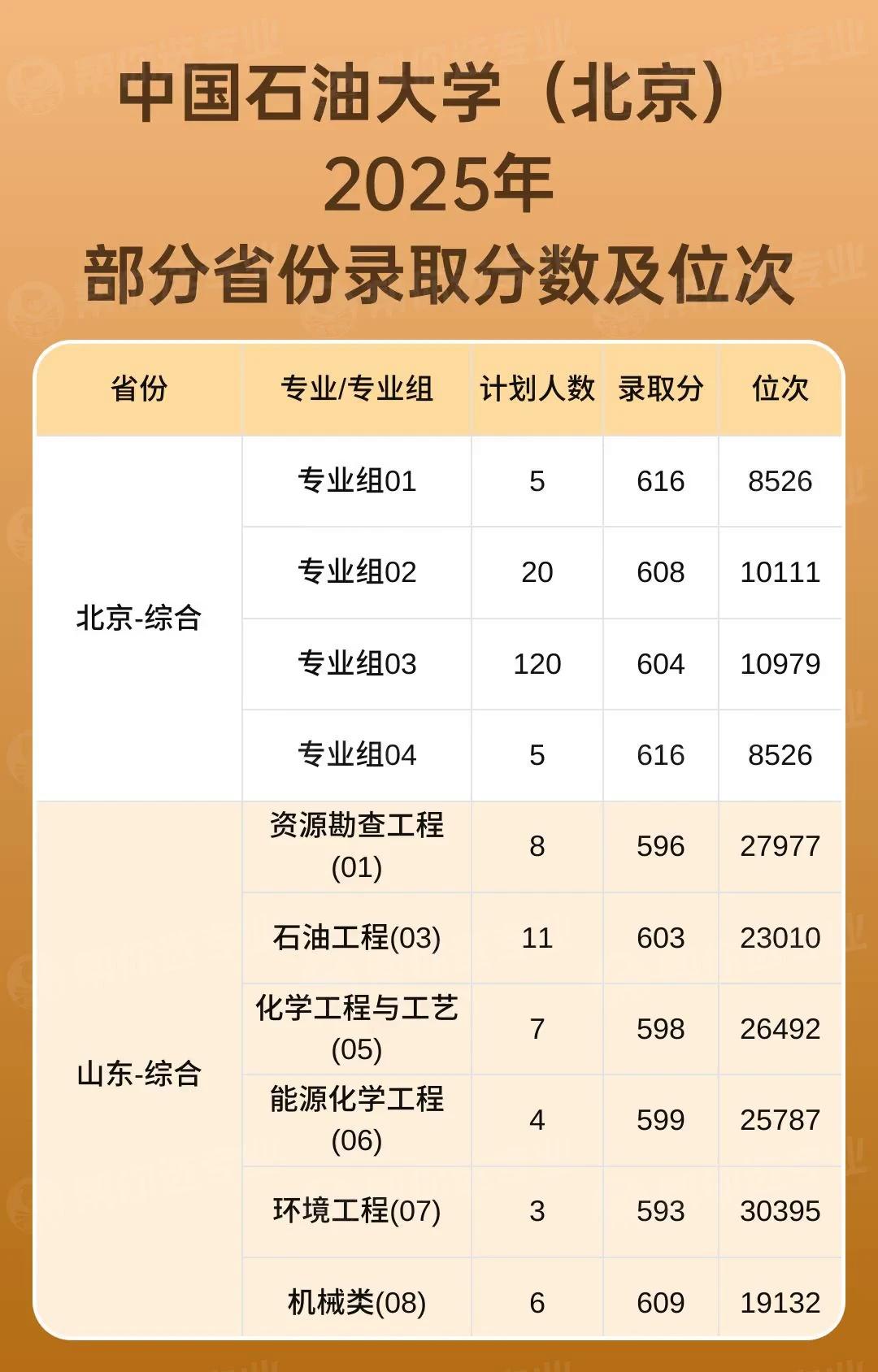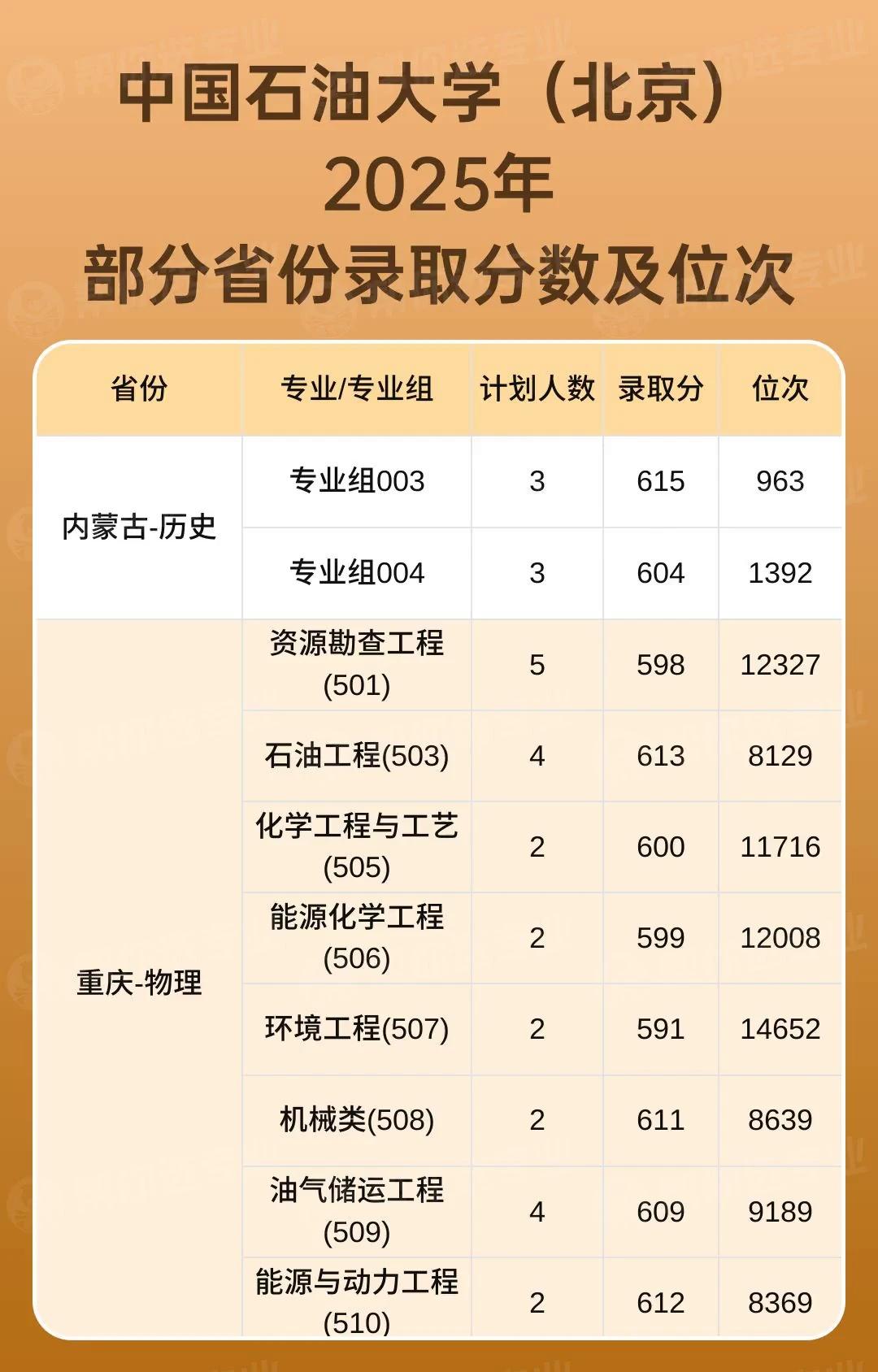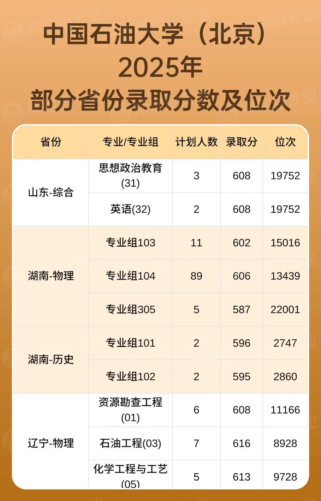 中国石油大学(北京)2025录取分数与位 2025录取分数及对应位次,根据对应省份一分一段整理的位次表,部分省份还未出 高考 考试 志愿 大学 本科 专业 北京