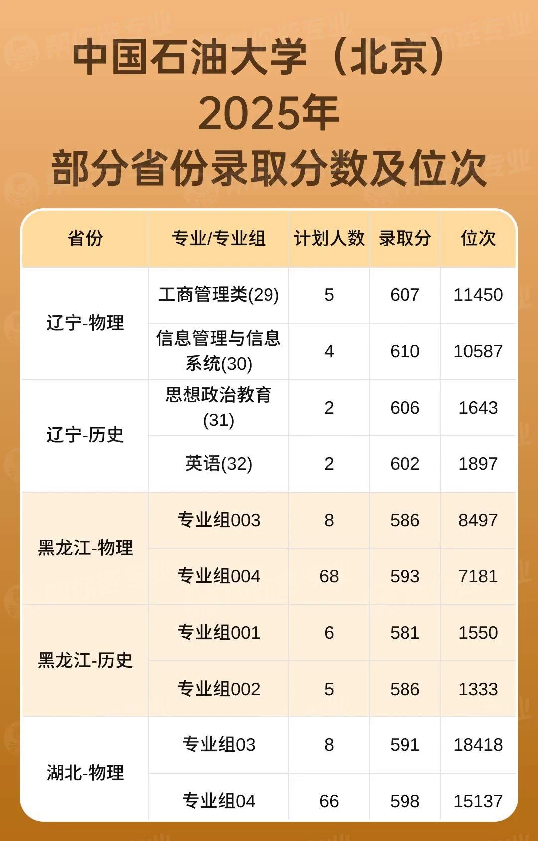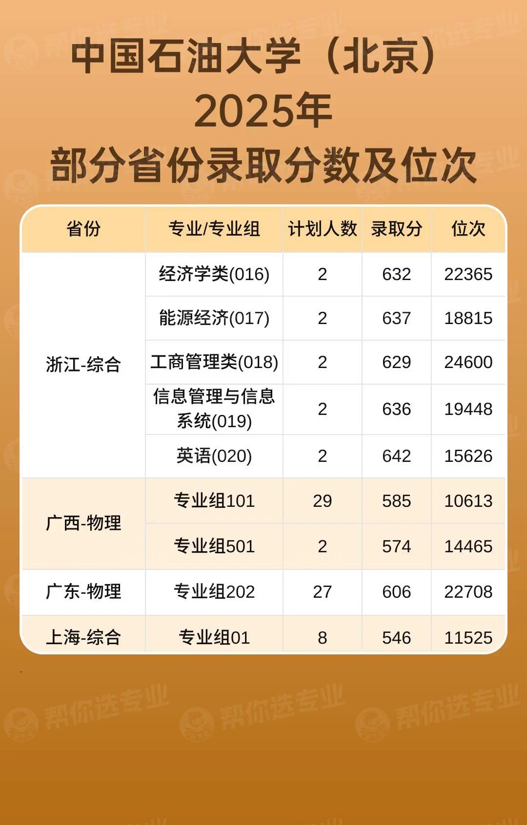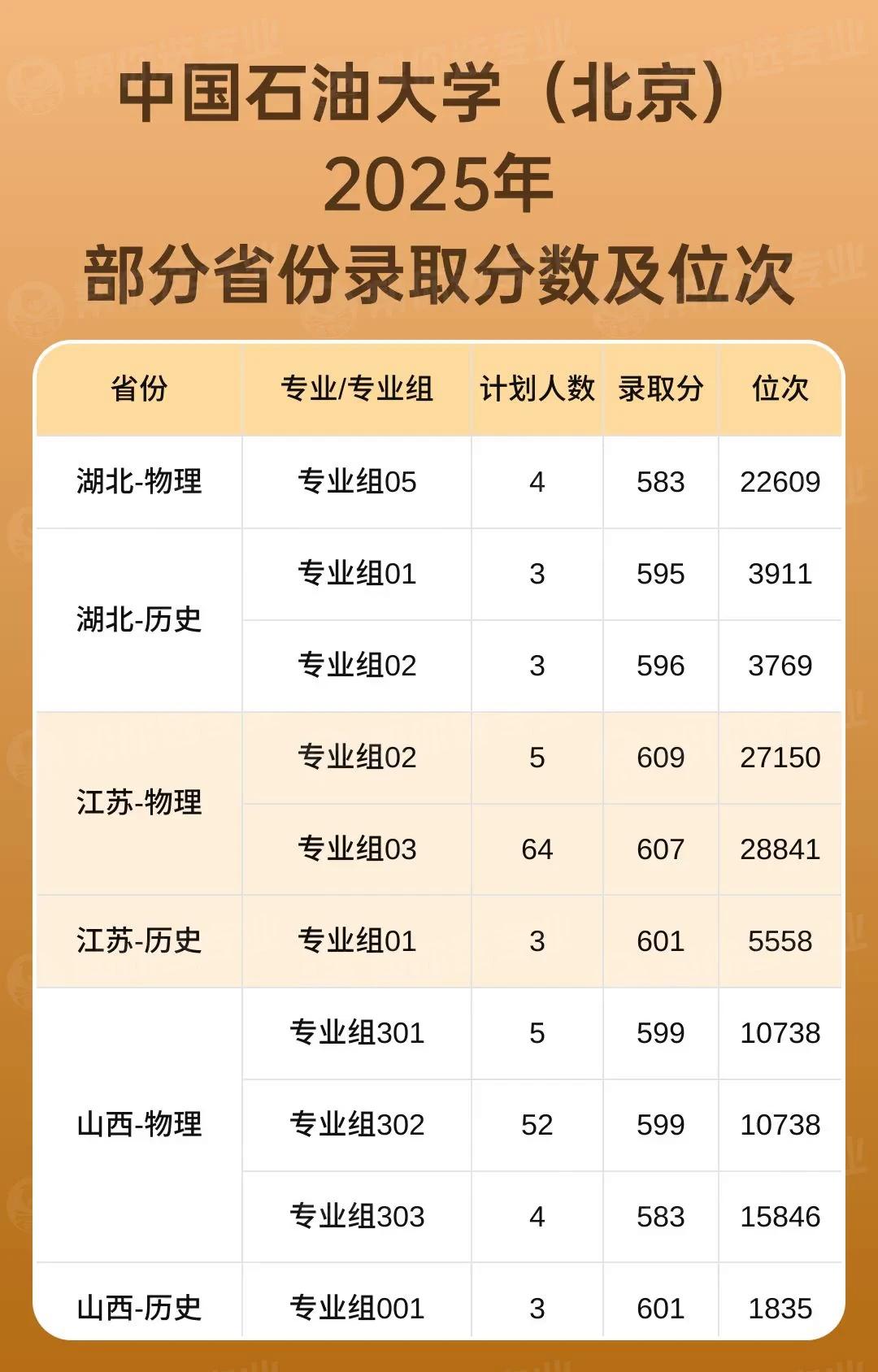 中国石油大学(北京)2025录取分数与位 2025录取分数及对应位次,根据对应省份一分一段整理的位次表,部分省份还未出 高考 考试 志愿 大学 本科 专业 北京