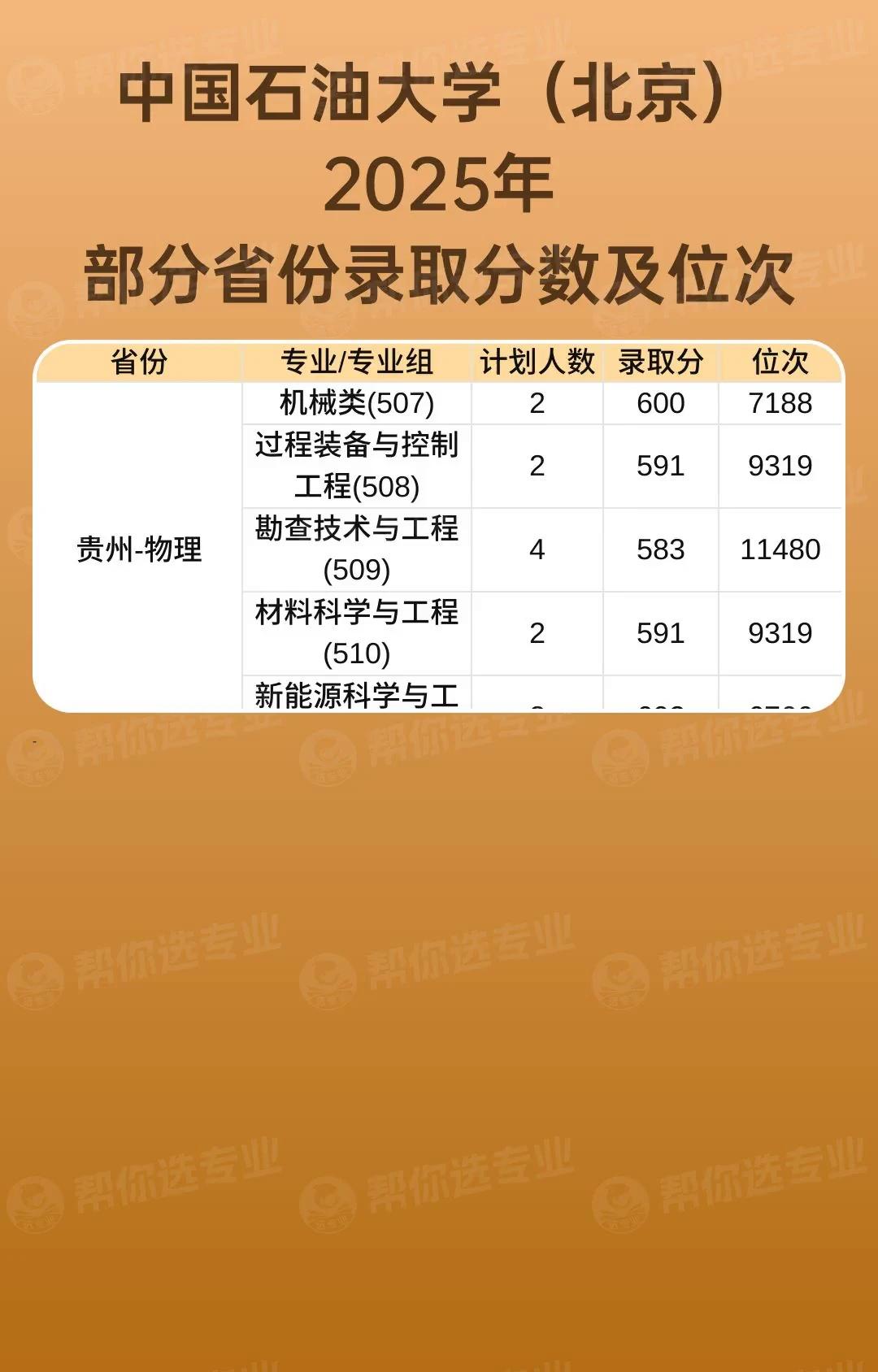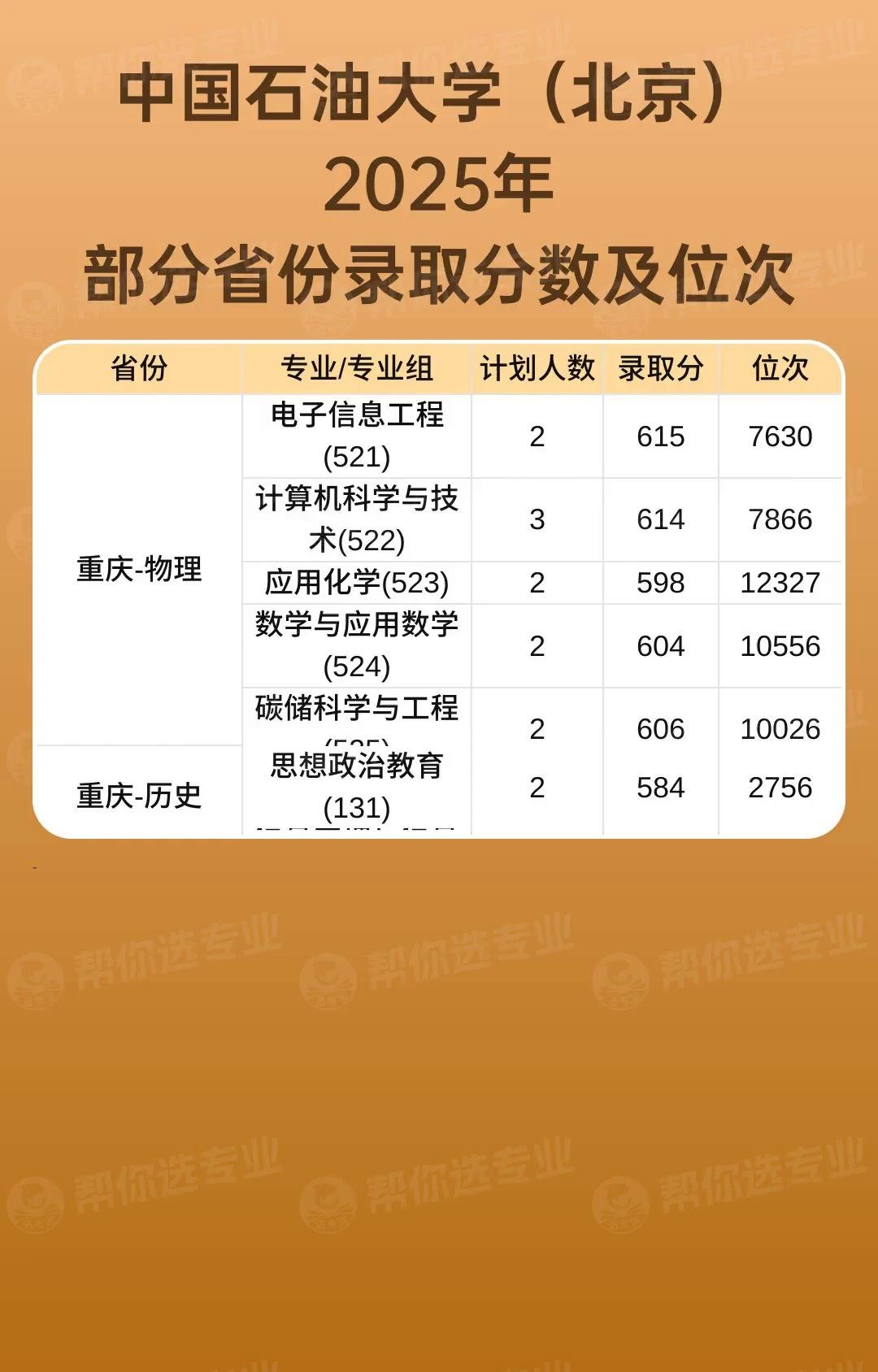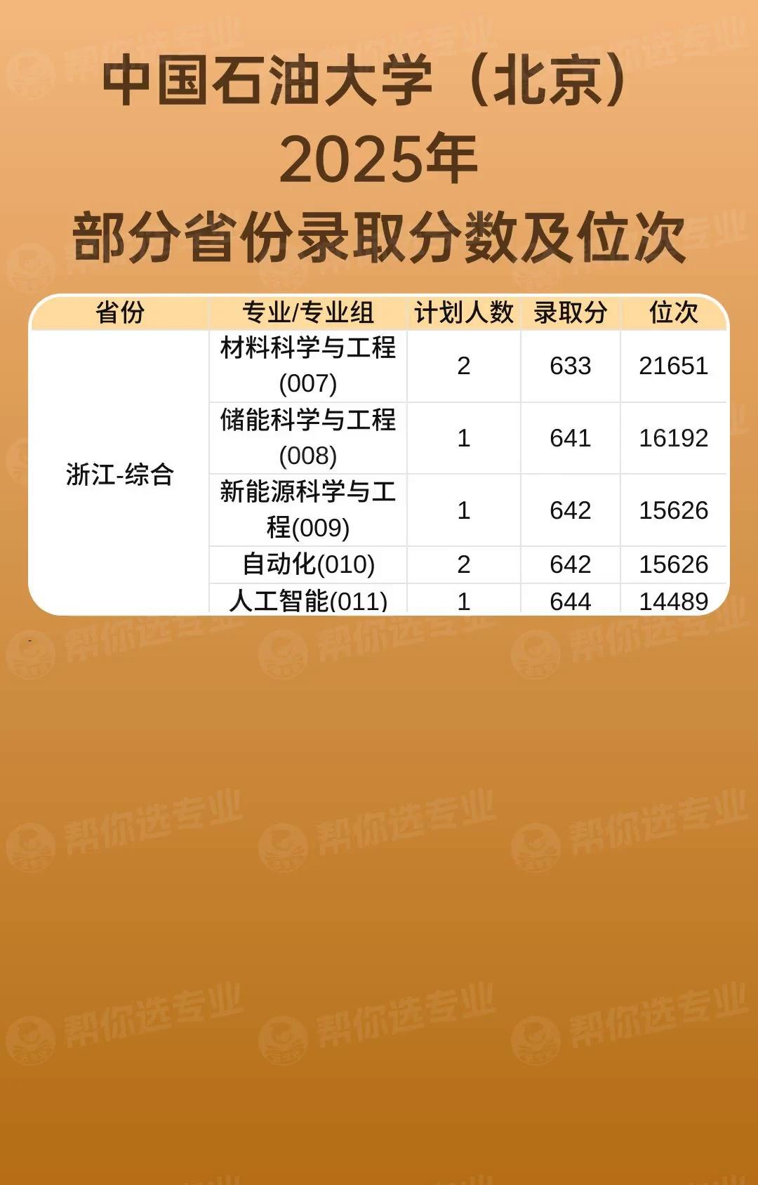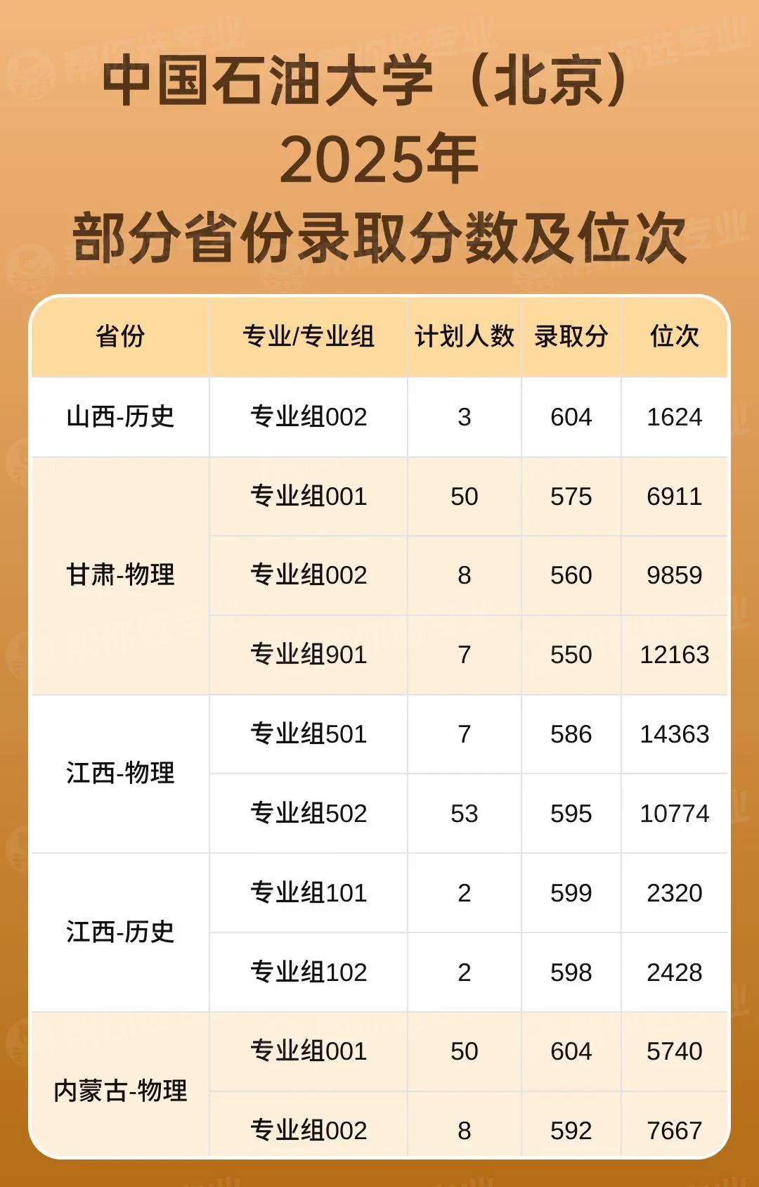中国石油大学(北京)2025录取分数与位 2025录取分数及对应位次,根据对应省份一分一段整理的位次表,部分省份还未出 高考 考试 志愿 大学 本科 专业 北京
