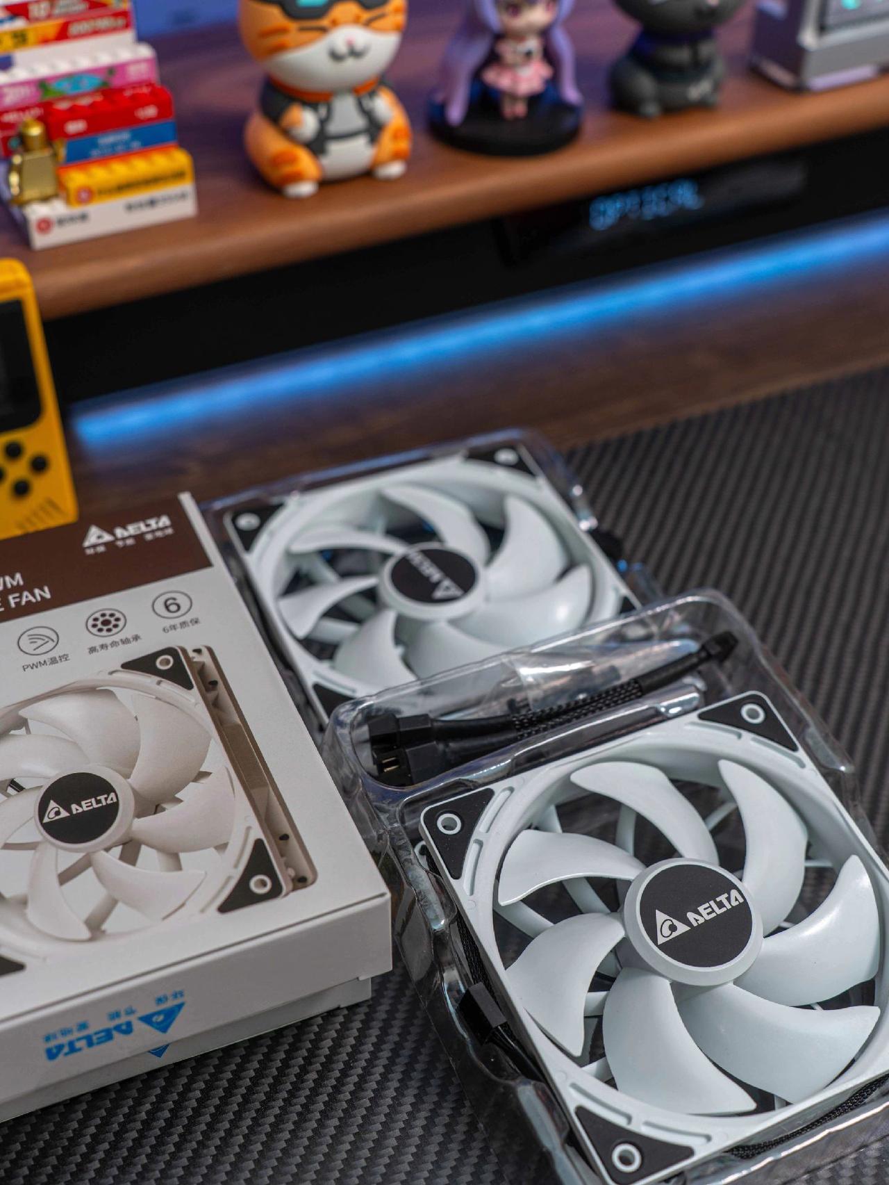 不到百元的暴力扇,水冷风冷良配|台达AK-12B低噪音效能风扇 14代处理器发热较高,之前的装的14700KF用240水冷有点压不住,机箱限制又不能换成360,那就只能在风扇上下功夫,不是猫扇买不起,而是不到百元的台达AK-12B更有性价比 风扇亮点 ☯️工业级液压风扇、多段曲面扇叶、SUPERFLO轴承、PWM温控、大风量低噪音、六年质保。 风扇型号 🆔台达AK-12B-W 推荐理由 1️⃣侧开的包装盒相当高档,风扇虽然使用了工业阻燃材料,但加入的玻纤PBT材质一改工业风扇的粗粝感,不仅乳白泛光颇显高档,而且拥有更好的耐高温性能,长时运行也能避免高温带来的形变隐患。 2️⃣结构上,风扇采用正面7个活动扇叶+背面11个导向扇叶形成立体风道,台达精心调整了叶片的间距和角度,在牺牲少量风量的基础上,让气流更加直线化并汇聚到一点,从而大幅提升风扇在同一转速下的静压表现,这种设计相当考验品牌技术实力。 3️⃣SuperFlo轴承+多段式曲面扇叶+减震脚垫,能在保持高转速的同时兼具优秀的静音效果。最低17dB的噪音表现,基本不会对使用者造成噪声困扰。有一点需要注意,风扇在中速下的性能和噪音表现最好,扇叶在低速下的振幅不如高转速来的平稳,但过高的转速又带来高噪音,好在FDB轴承自带的润滑油能在一定程度上缓解这个问题。 4️⃣质保方面风扇提供了6年只换不修,6万小时的使用寿命,充分证明了品牌的信心,支持 PWM智能温控,适用场景还是很广的。 适合用户 🔯风扇不带RGB灯效,所以最适合的还是讲究性能、追求性价比的用户,最合适的场景是替换水冷风冷原装风扇,以此强化散热性能。 PS: ⚛️同系列还有款4800转的暴力版本AFB1212MJ,风压更强风量更高,但双滚珠轴承相对来说噪音要大些,振幅波动也不如AK-12B的含油轴承控制的好,所以,如果不是追求极致的风量输出,百元内的AK-12B才是真.性价比。