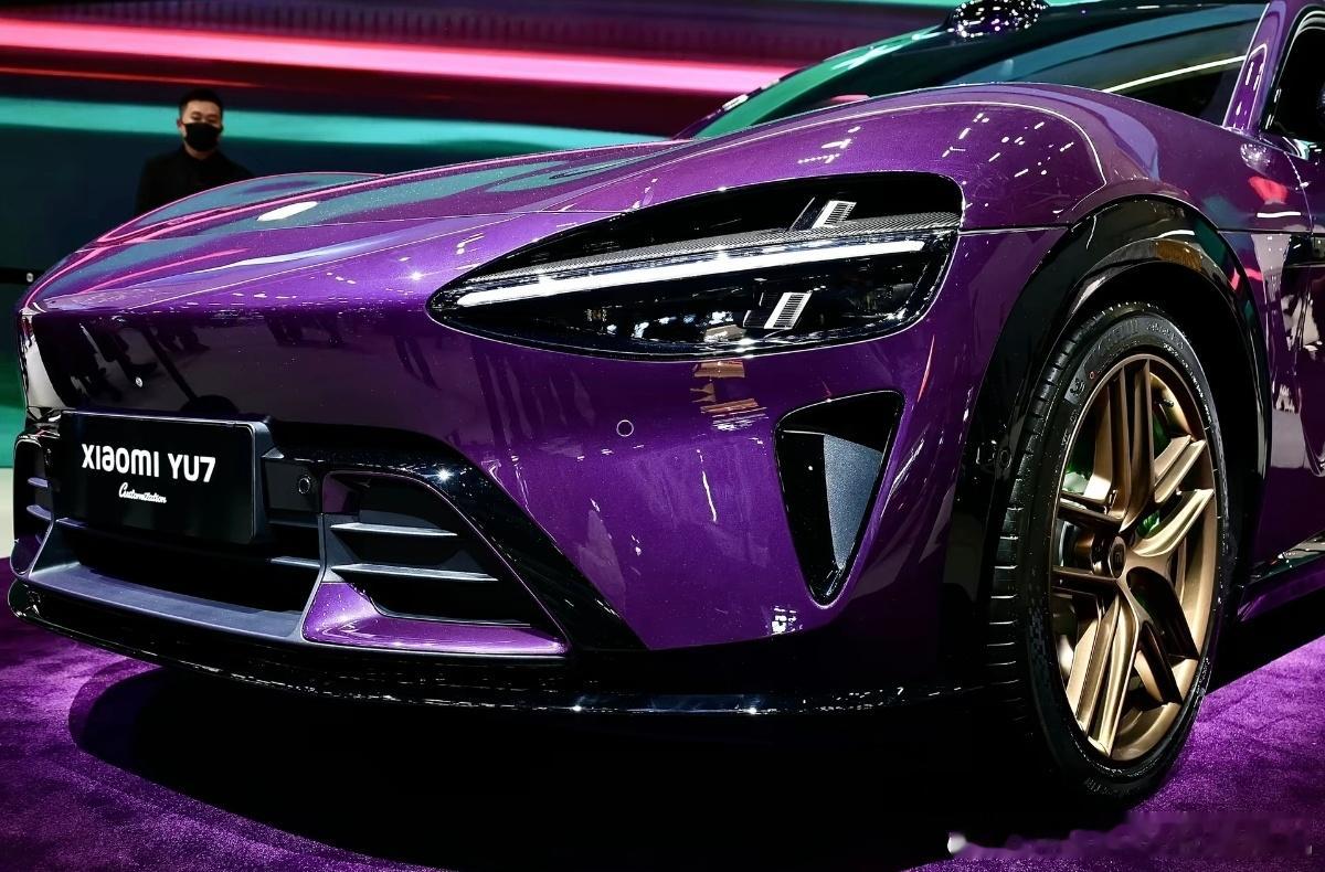 前天媒体日都没有拿出来展示,专门等到观众日才亮相的小米YU7紫水晶高定版,全部选装完直奔50万元去了。亮的离谱的车漆,21寸金色轮毂,白陶瓷车标,看似和普通班没有太大区别,其实细节处处不一样。
