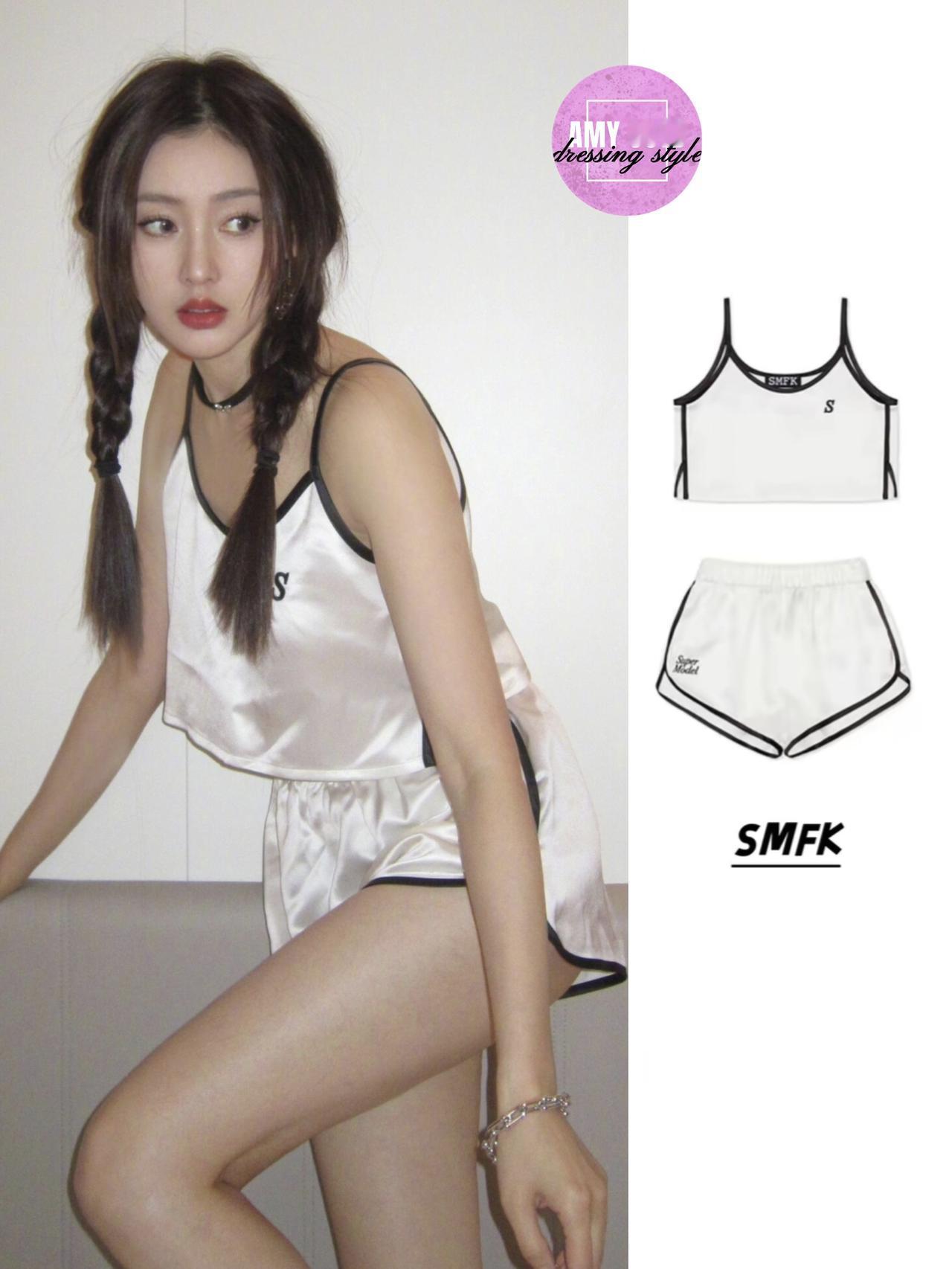 张天爱这身居家造型太戳“软萌纯欲”的点了!SMFK复古运动分体睡衣简约又清爽,搭配毛绒玩偶,慵懒里带着甜妹氛围,是“居家松弛感穿搭”的模板~张天爱