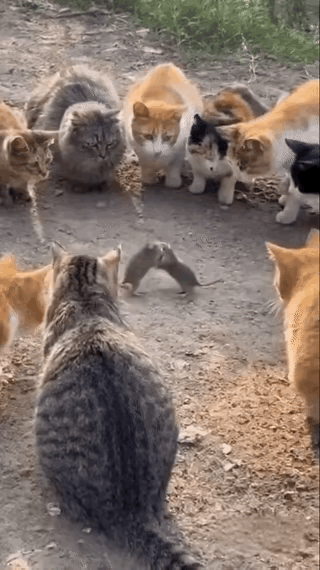 两只老鼠在空地上扭打着,旁边蹲了好几只猫,直勾勾地看着它们。老鼠心里咯噔一下:完了完了,这下肯定要被吃了…… 这时候,其中一只老鼠喘着气对另一只说:“兄弟,咱可不能停手,得接着打!等这几只猫看腻了、放松警惕,咱就趁机会赶紧溜!”