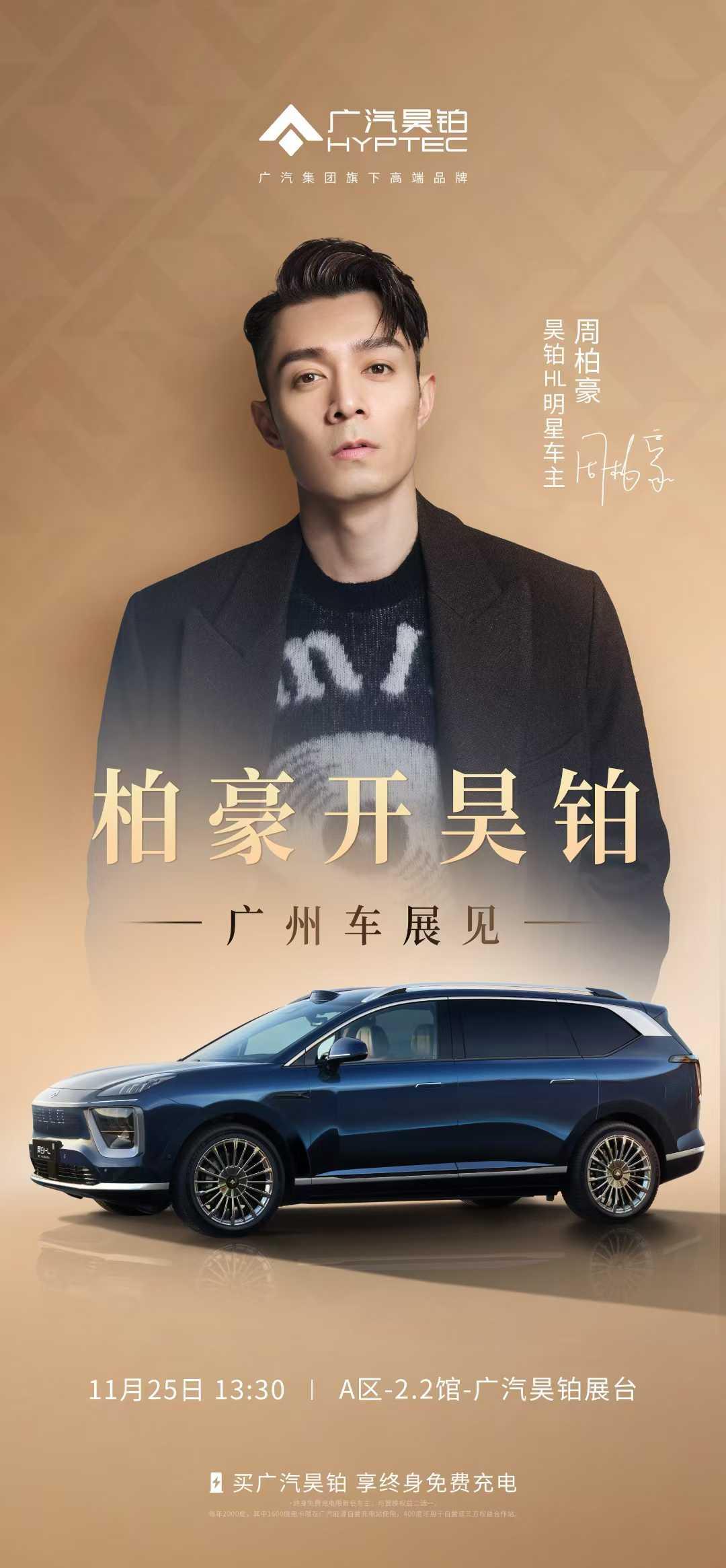 昊铂HL明星车主来啦! 周柏豪惊喜亮相广州车展 一起来近距离与明星「昊」友见面 11月25日13:30锁定广汽昊铂展台,我们不见不散