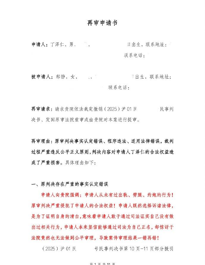 感谢前女友愿意为我出庭作证丁泽仁公开再审申请书
