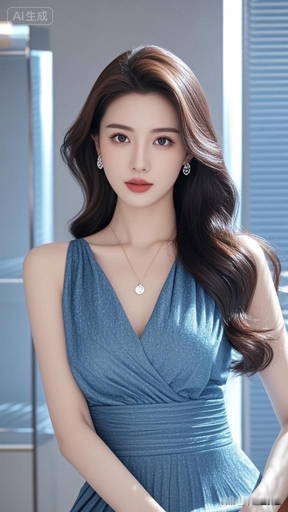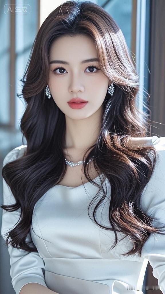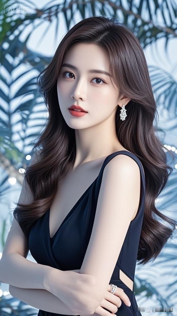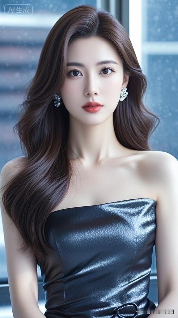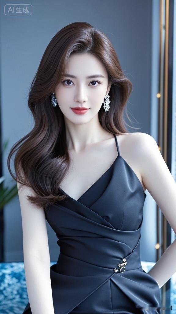 优雅黑裙,精致妆容,沉静气质,都市女性风范。