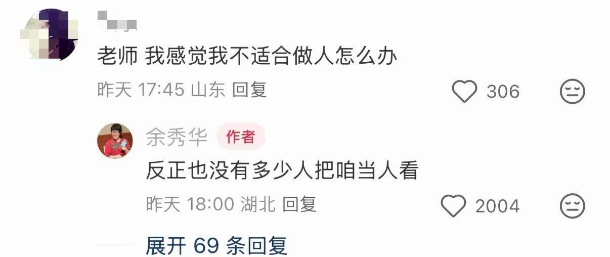 在余秀华的回复里缓解焦哈哈哈哈哈哈哈