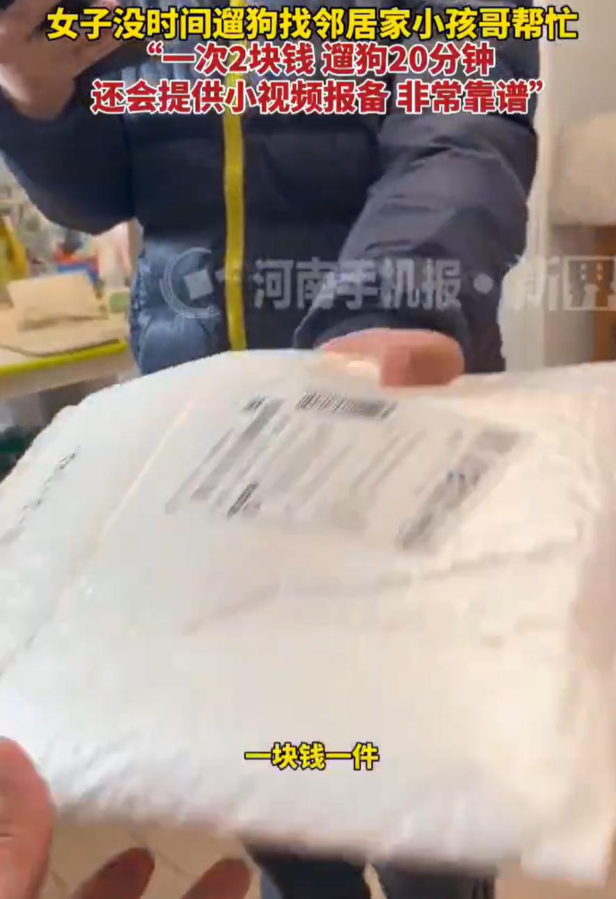 这算盘打的真好!河南郑州,女子因为平时生活工作比较忙,没有时间遛狗,偶然得知邻居家小孩想要买相机,于是出钱让小孩哥帮忙遛狗,一次20分钟,2块钱,直接花小钱办了大事,网友:这也太欺负小孩哥了 刘女士介绍,邻居家小孩想挣钱买运动相机,而且平时和家里的狗也比较熟悉,正好自己不想遛狗了,她提出:你帮我遛狗,一次二十分钟,我给你两块钱 小孩哥一听,立马答应了。从此每天准时敲门,牵着小狗在小区里转悠,既让狗活动了身体,自己也赚了点零花钱 后来合作还升级了。刘女士有时懒得下楼取快递,也请小孩哥跑腿,一件一块钱。对她来说省了事,对孩子来说攒了钱,两边都开心 不过这事传到网上,却引来了不同声音 有网友开玩笑说:靠信息差压榨劳动力了属于是,上门代遛狗喂猫铲屎这一类服务市场价也得二十几块钱一次 但也有网友质疑:隐患非常大,但凡出点事,女子都可以说不是自己溜的,并且已经花钱请人,责任完全可以甩出去,这邻居家长也是心大!就这点少的可怜的钱,还敢让孩子冒这个风险 说起来,孩子通过劳动赚零花钱,本是好事,早期我们小时候也常通过做家务、帮忙跑腿来攒钱买自己喜欢的东西。这是一种很朴素的价值交换 但安全问题也确实不能忽视。毕竟遛狗不是简单活,大型犬可能爆冲,遇到其他狗可能打架,孩子是否具备足够的控制力和应变能力?这些都是潜在风险 如果真要让孩子帮忙,最好事先做好培训,系好牵引绳,规定好路线,最好初期有家长暗中观察几次,只要家长在旁边看着,成年人把话交代清楚,这种邻里之间的小合作反而能让关系变得柔软