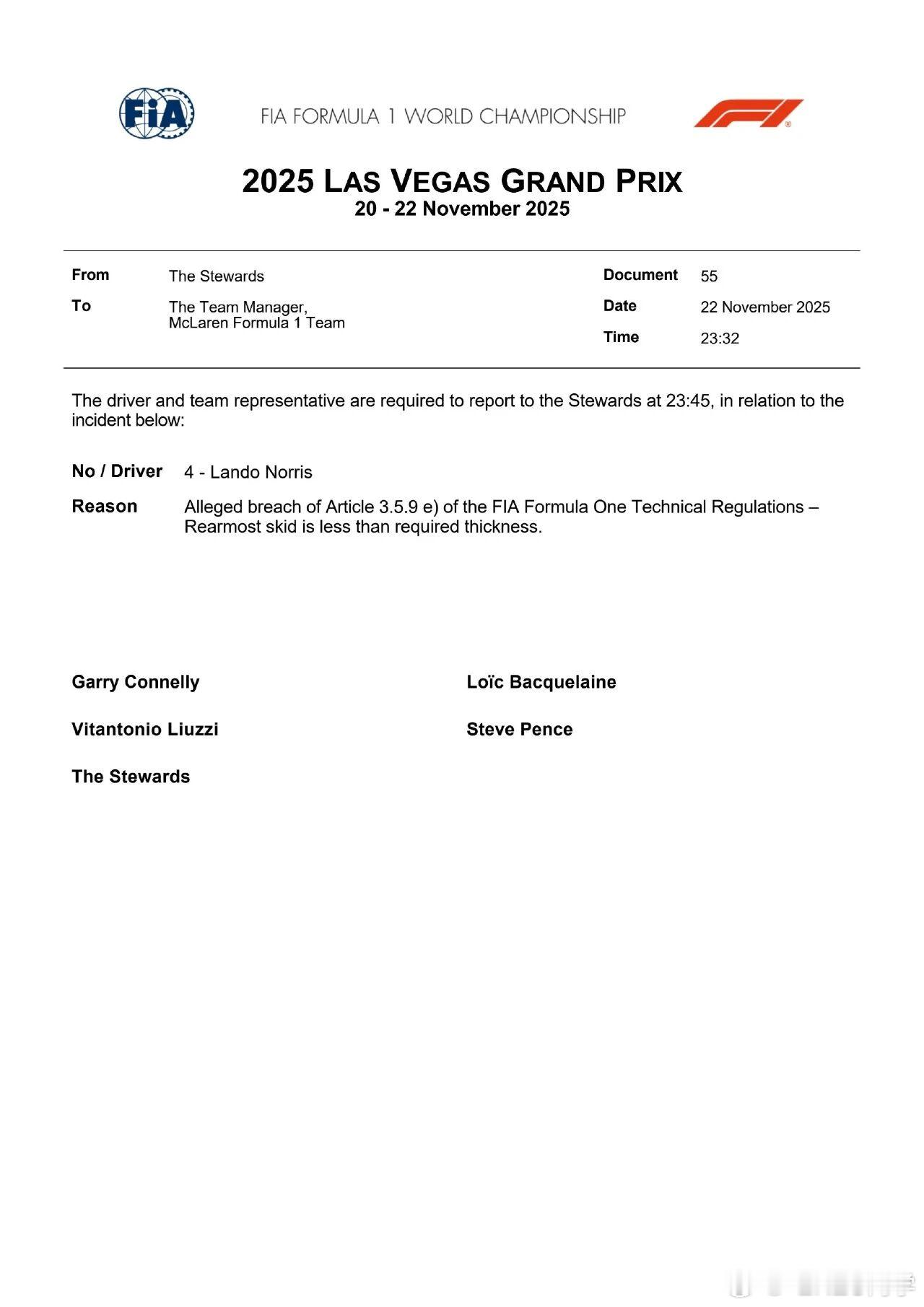 突发!迈凯轮两车正在接受FIA关于底盘磨损的检测如果磨损超过标准,那么两台车在拉斯维加斯的成绩将被取消!如果取消成绩,诺里斯的车手积分将回到390分,皮亚斯特里回到366分,维斯塔潘不变366分。维斯塔潘和皮亚斯特里落后诺里斯24分,并列积分榜第二并且赛季还有58个积分可以获取同时,窝法的两位车手也上升到第四和第八平行宇宙:如果乐扣把和安东内利的秒差控制在5秒以内,那么。。。。