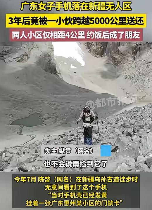 这算不算奇迹?一场普通的旅游意外,却在不经意间引发了一段跨越千里的温暖故事。广东的李女士原本以为手机的遗失只是一次普通的失误,没想到三年后,命运的转盘竟然带来了如此令人动容的奇迹。 事情的起因很简单:一次新疆之旅,李女士在乱石堆中不慎丢失了手机。她四处寻找,翻遍了每一个角落,却始终未能如愿。失望之下,她只能接受现实,重新办了一张卡,暗自以为这段旅程就此画上句号。谁曾想,三年后,一条陌生的短信改变了一切——那是一部被人拾获、藏匿在某个偏远角落的手机发来的消息。 原来,这部手机在荒野中被一名热心的牧民拾到,经过几次寻找失主无果后,被他妥善保存了起来。三年间,它静静地躺在角落里,仿佛等待着与主人再次相遇。直到有一天,手机突然发出了一条来自“未知号码”的消息——“这是我的手机,请还给我。”当天,李女士惊喜得几乎不敢相信自己的眼睛。 这份跨越5000公里的“归还”,让她内心泛起了千层浪。陌生人不求回报的善意,打破了无数人心中对“陌生人”二字的偏见。更令人感动的是,双方很快成为了朋友,手机的归还不仅仅是一次物品的回归,更是人与人之间那份久违的信任与温暖。 网友们纷纷点赞:“无巧不成书,这就是生活的奇迹吧!”“在这个快节奏、信息碎片化的时代,这样的善意让人心暖。”有人感慨:或许,生活中那些看似偶然的巧合,正是命运在用最温柔的方式告诉我们——善良和信任,终究会有最美的回报。 这故事折射出一个深刻的真理:在这个世界上,善意的种子在不经意间就能生根发芽。我们常常习惯于忽视身边的温暖,抱怨生活的不公,却忽略了那些细微的善举,正是它们,让这个世界变得更加美好。当你愿意相信善良,善良也会在某个不经意的瞬间,回到你的身边。 所以,你相信奇迹吗?也许,它就在我们身边,只等待着被我们用一颗善良的心去发现。就像这位陌生人的善举,不仅还回了一部手机,更还给了我们一份对人生的温暖期待。愿每个人都能在平凡中,遇见不平凡的温暖,感受到生活中最真实的奇迹。感人心灵的故事 温情感动故事