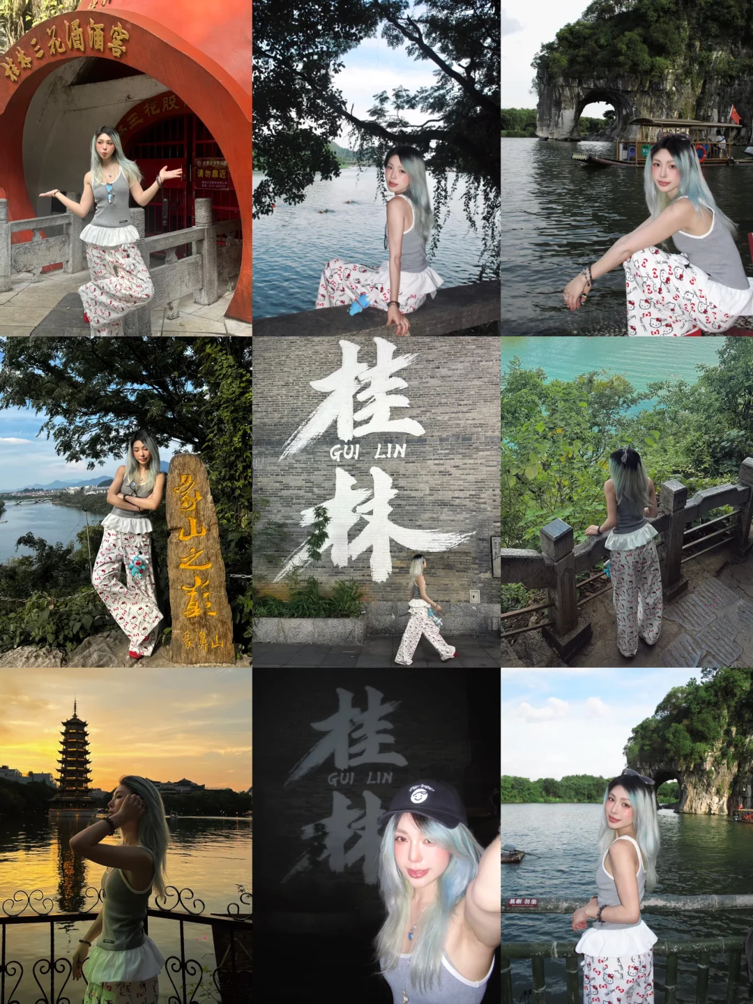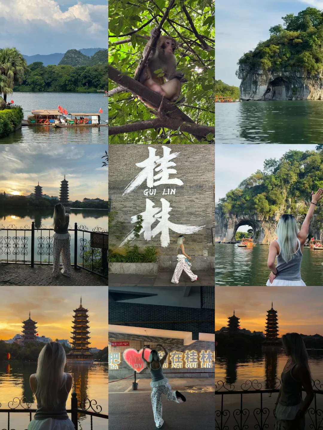 上午:经典打卡📷\n➡️ 7:30 老东江米粉来一碗!卤香浓郁超地道🍜\n➡️ 8:30 象鼻山3号门进▶️观景台拍竹筏+象鼻同框📸(提前预约!隐藏机位在3号门水月洞)\n中午:古街逛吃\n➡️ 11:00 正阳步行街 中午人比较少,晚上特别热闹\n➡️ 12:30 东西巷扫街:糯米饭/桂花糕/酸嘢必尝!\n下午:漓江游🚣\n➡️ 14:30 打车至杨堤▶️乘竹筏游漓江🌊\n(20元人民币背景打卡get!)\n➡️ 16:30 兴坪古镇逛老街▶️买桂花糖当伴手礼🎁\n晚上:夜景收尾\n➡️ 19:30 夜游两江四湖🌙日月双塔夜景绝美\n➡️ 20:30 正阳步行街吃啤酒鱼!小南国性价比👍\n-\n💡保姆级Tips:\n✅ 景点间打车更省时\n✅ 象鼻山免费需预约,漓江竹筏50R/人\n✅ 拒绝路边\"野导\"!明码标价再消费\n✅ 穿舒适鞋!暴走2万步+\n✅桂林米粉随便一家都行呢\n✅西街晚上去更热闹\n-\n📸出片点:\n1️⃣ 象鼻山观景台竹筏合影\n2️⃣ 漓江竹筏山水画卷(和象鼻山合影)\n3️⃣ 日月双塔夜景倒影(傍晚超级美)\n4️⃣ 东西巷青砖黛瓦文艺照\n5⃣️桂林打卡墙\n\t\n虽然累但超值!桂林山水真的像画一样美🏞️ 一天玩转精华超满足~\n