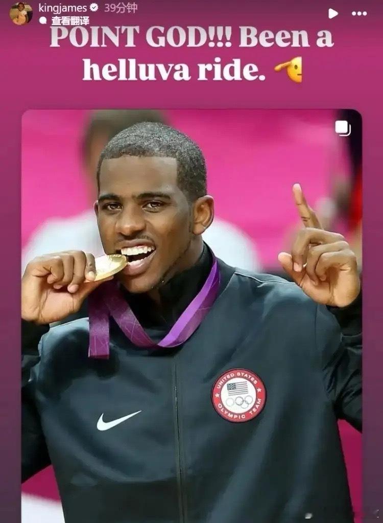 湖人超级球星詹姆斯真是太会来事了!今天快船老将保罗在社媒上宣布将会在本赛季结束之后退役,值得一提的是,保罗的好兄弟詹姆斯特意更新社媒,转发了一张保罗在北京奥运会赢得金牌的照片,并配文道:“控卫之神,这真的是一段惊心动魄的旅途。”登哥谈到和保罗在休斯顿合作了生涯的时候,他其实还是有一些失落的因为他说其实他们那个时候本有机会创造一番伟大的事业,可惜最终需要保持健康如果哈登20+10就能赢球快船才有希望!哈登目前的状态要的是串联队友打团队篮球,不是个人秀!能感觉到哈登的无奈!不过青春本来就不完美,我们从小看灌篮高手,不都是如此吗?没有冠军,并不影响哈登的伟大,我们喜欢他,世间本来就是如此