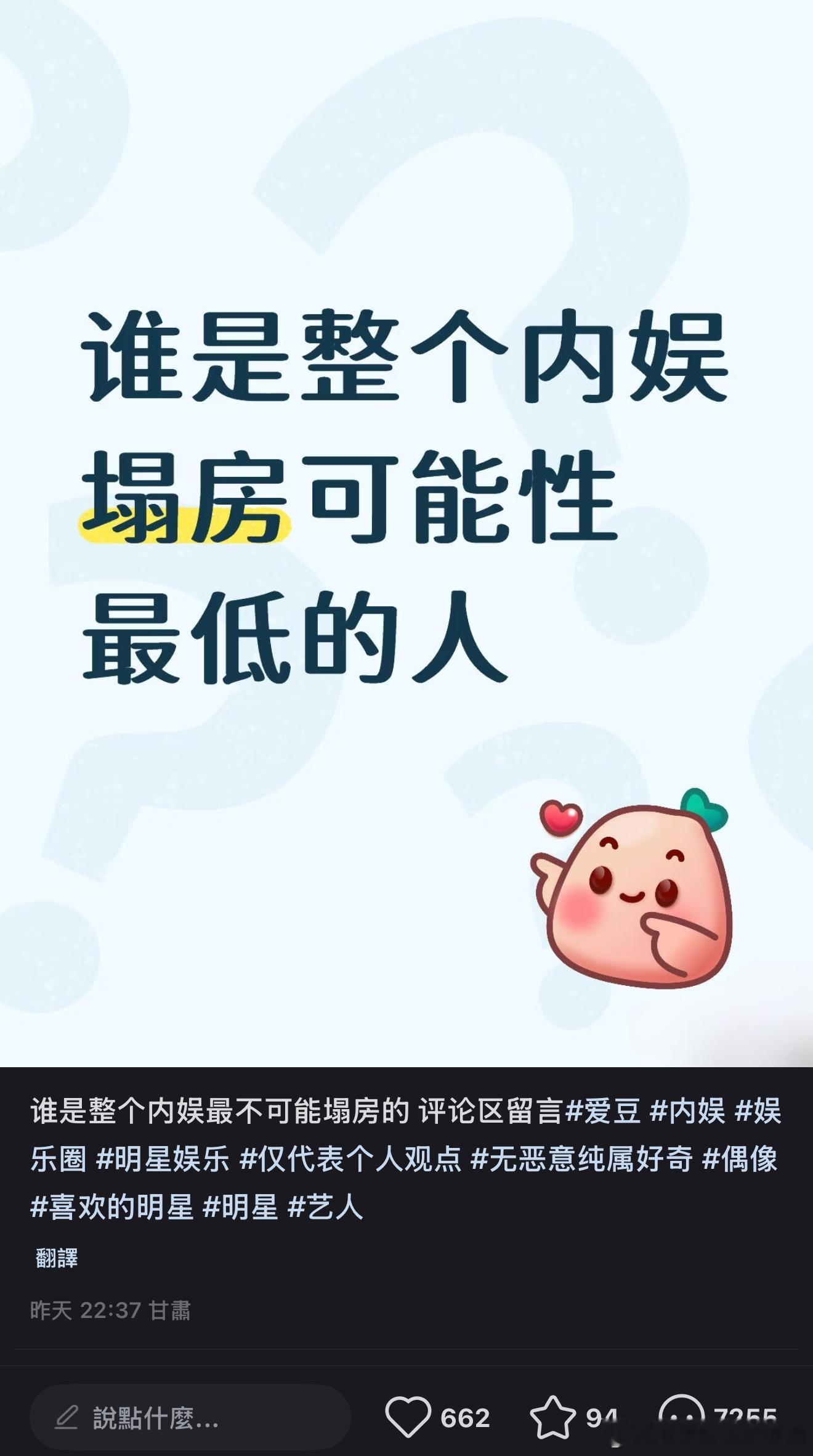 下沉市场有人提问:谁是内娱塌房可能性最高的艺人?红榜艺人只有鞠婧祎何老师和王宝强王俊凯四人,易烊千玺弟弟的塌房可能性点赞量高达1.6万,你们觉得这个评论合理吗🤥