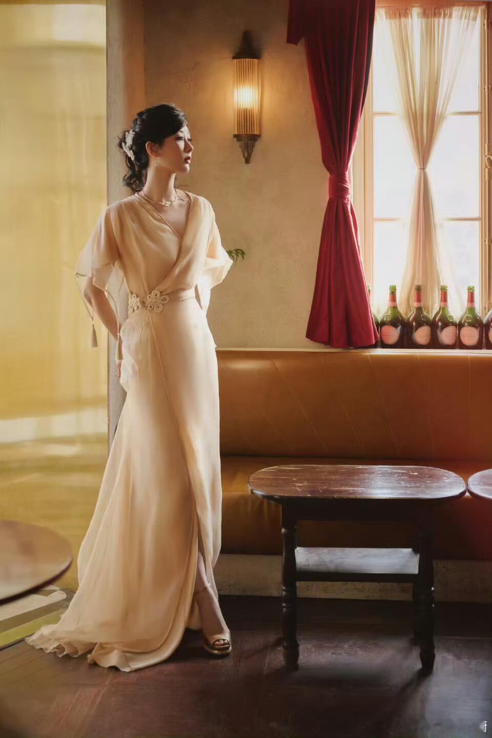 杨紫活动造型,穿着Julien Fournié高定礼服出镜,佩戴Pomellato珠宝,裸色长裙腰间盘扣装饰,带着柔美优雅的温婉气质。
