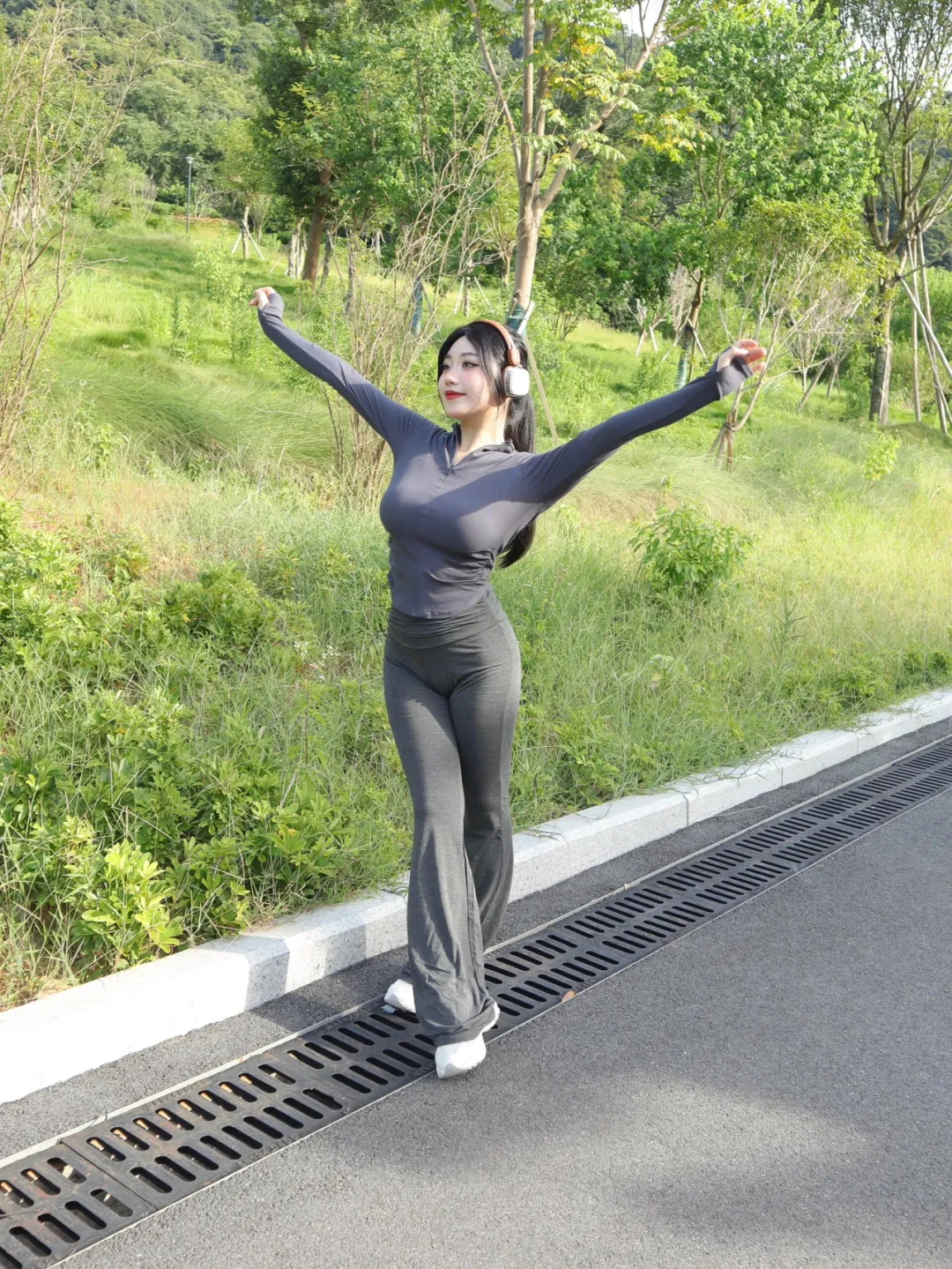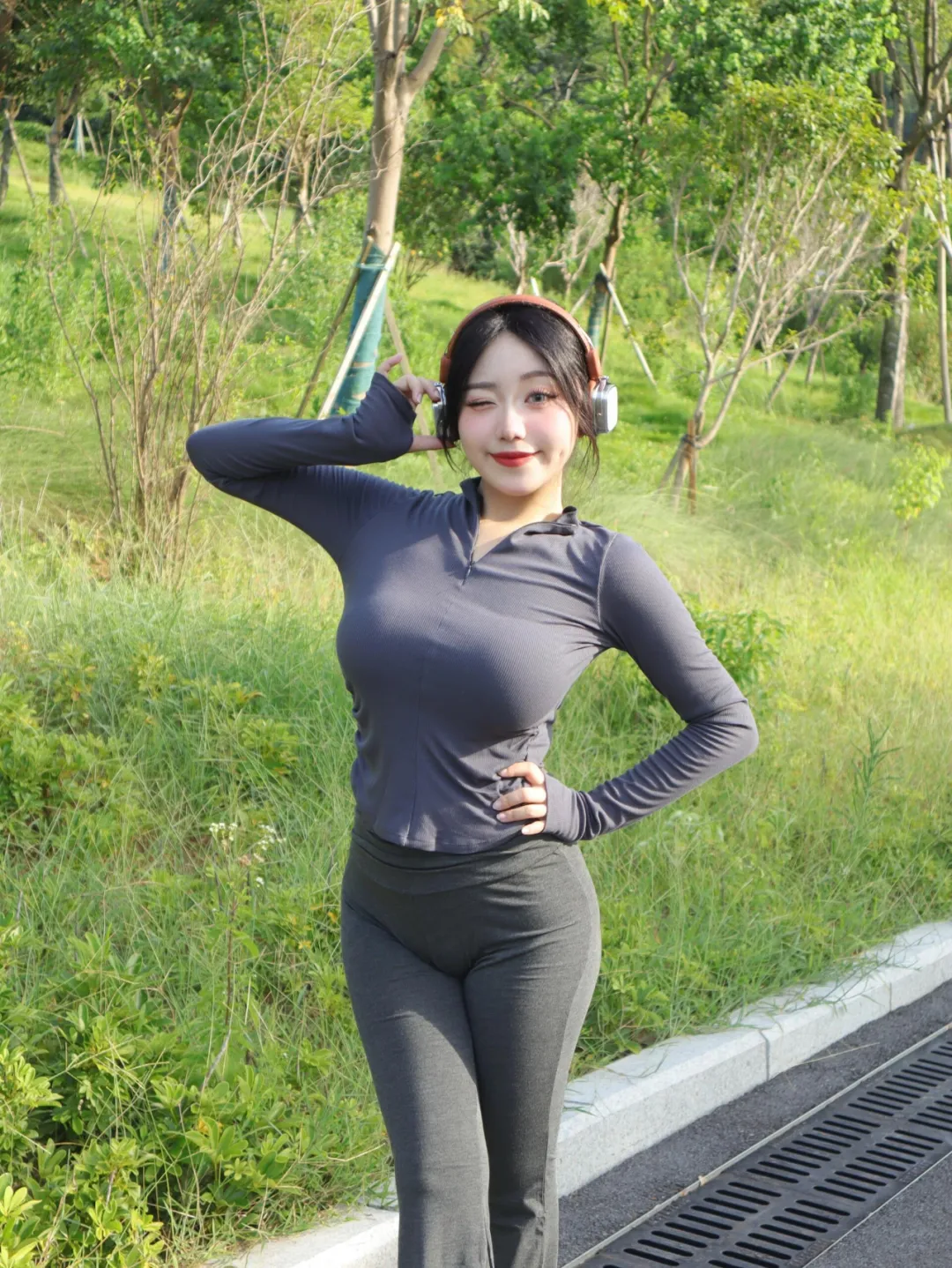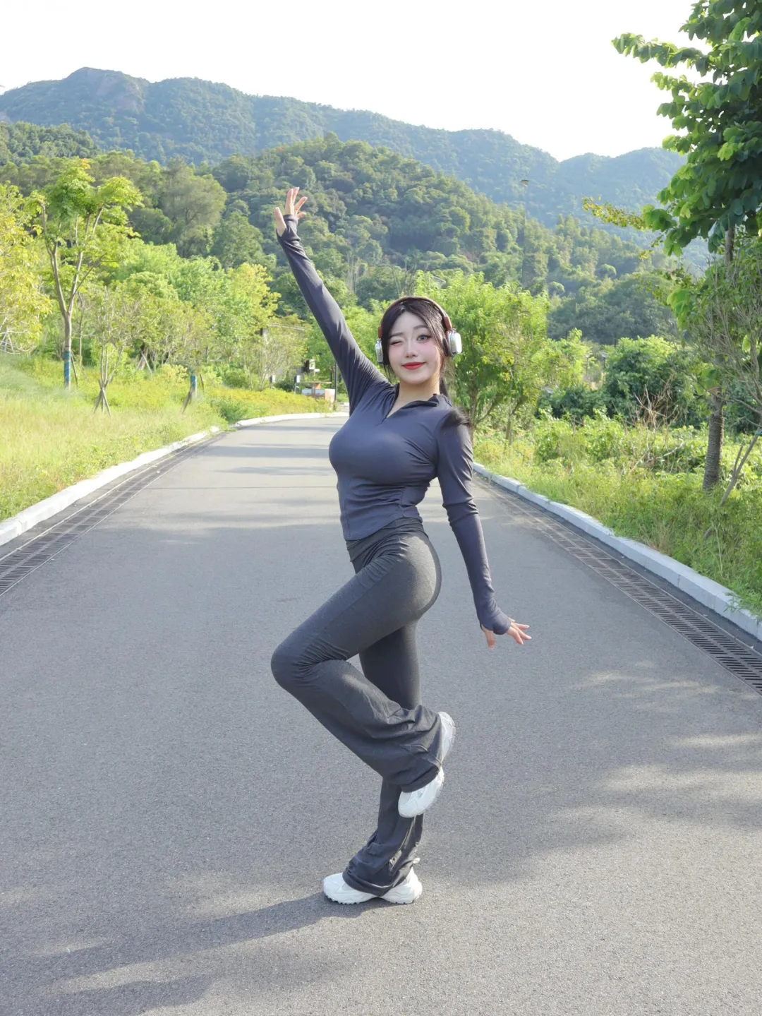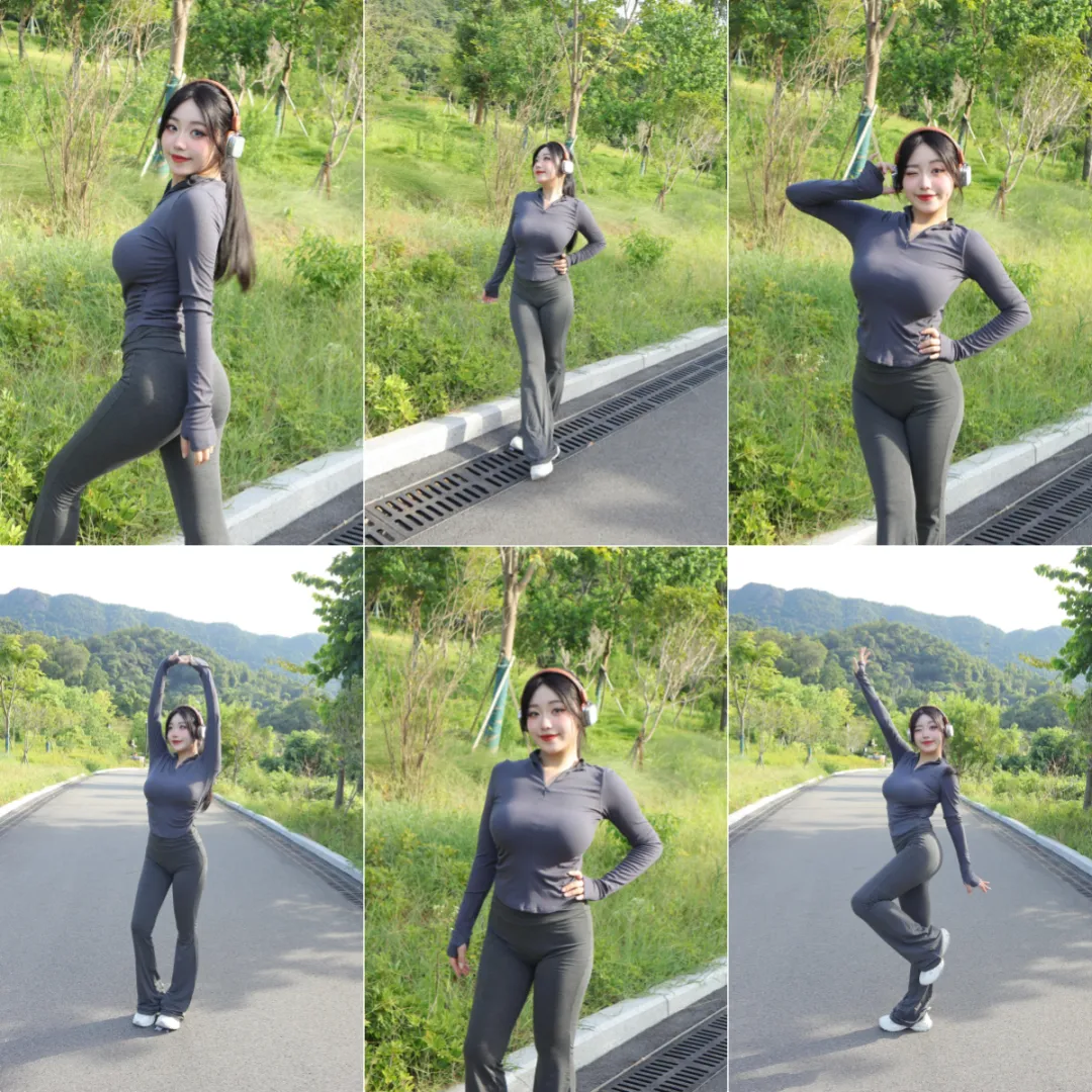 女生户外运动拍照,一些小动作,松弛出片,好看显身材