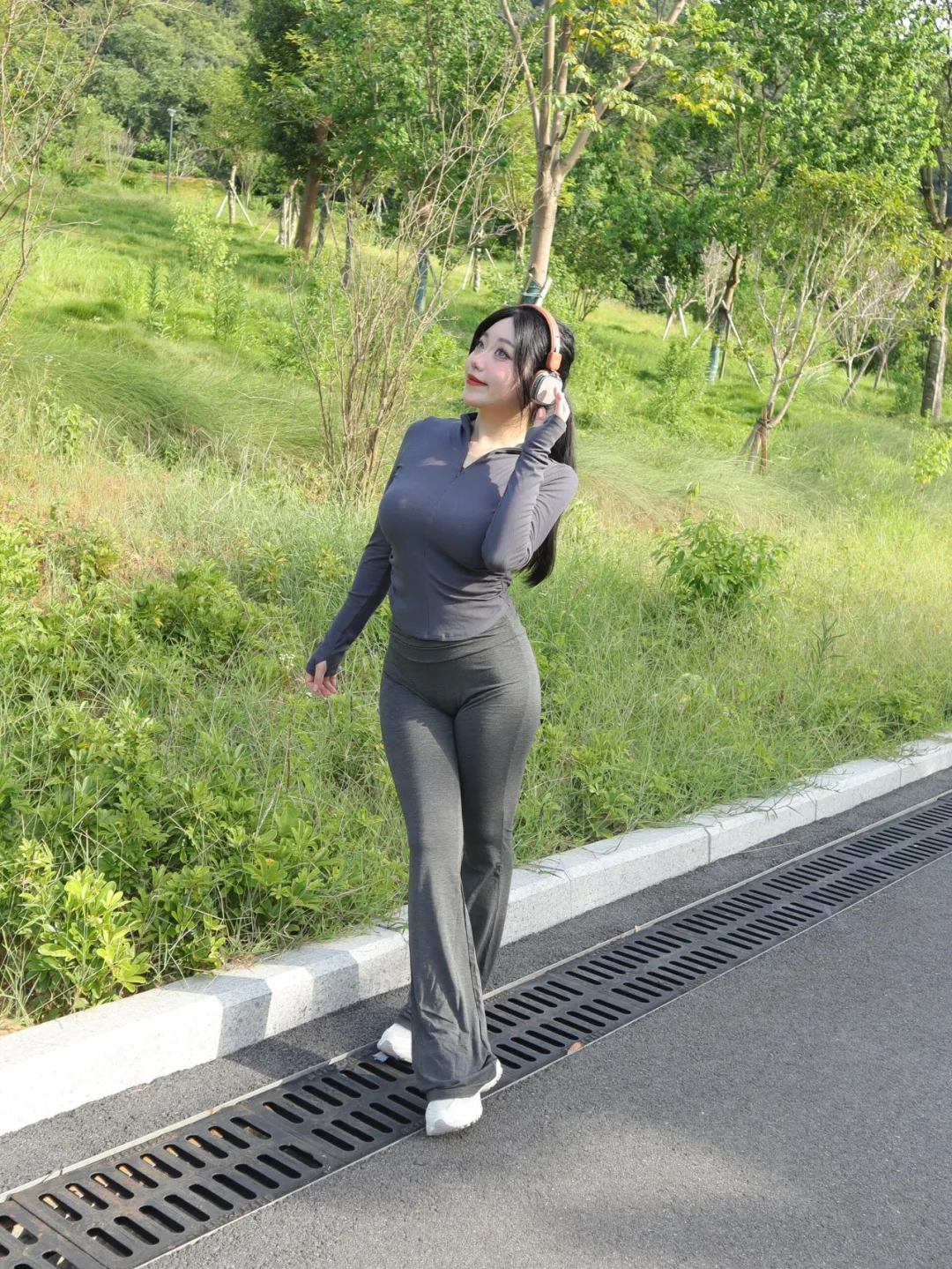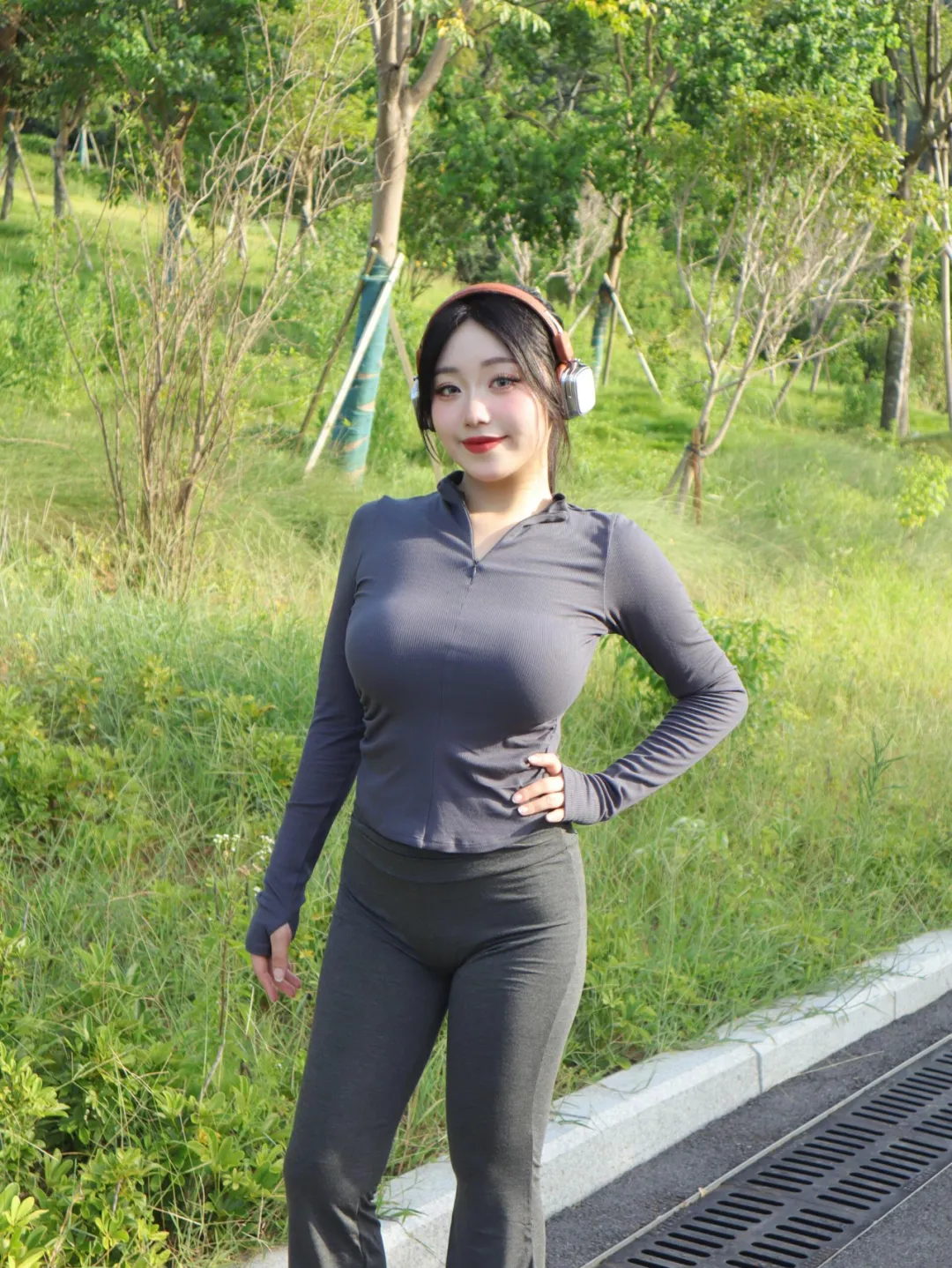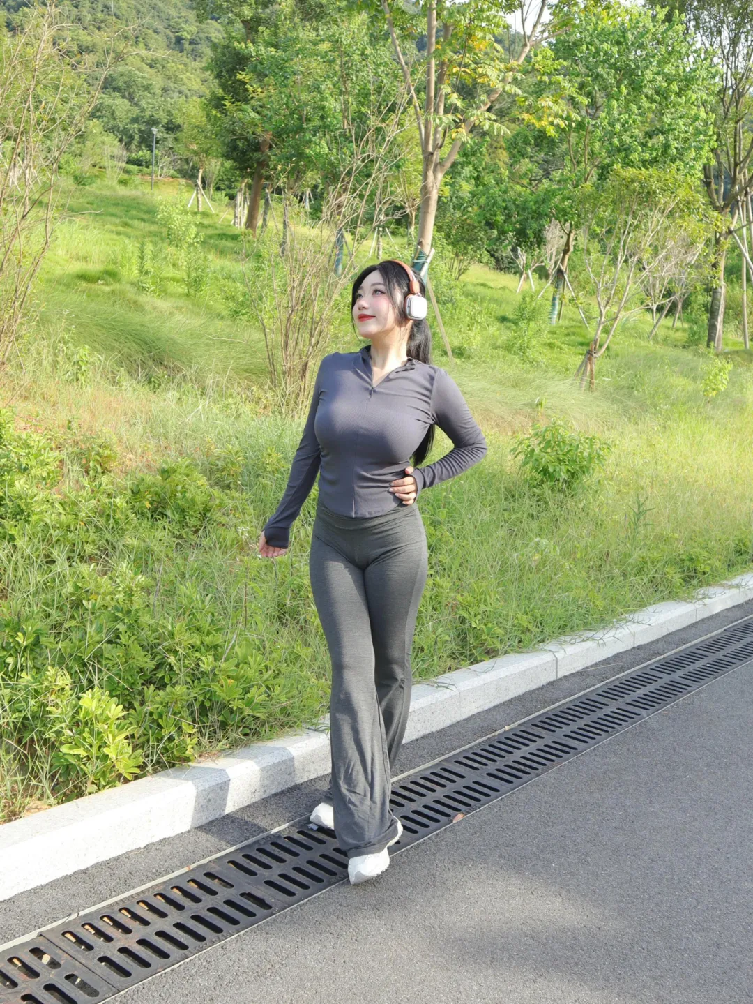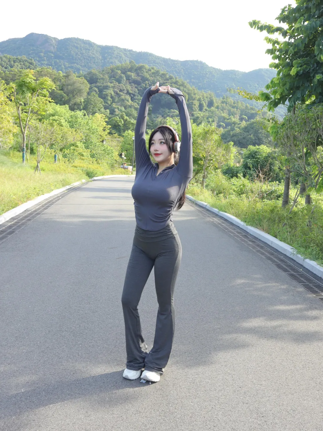 女生户外运动拍照,一些小动作,松弛出片,好看显身材