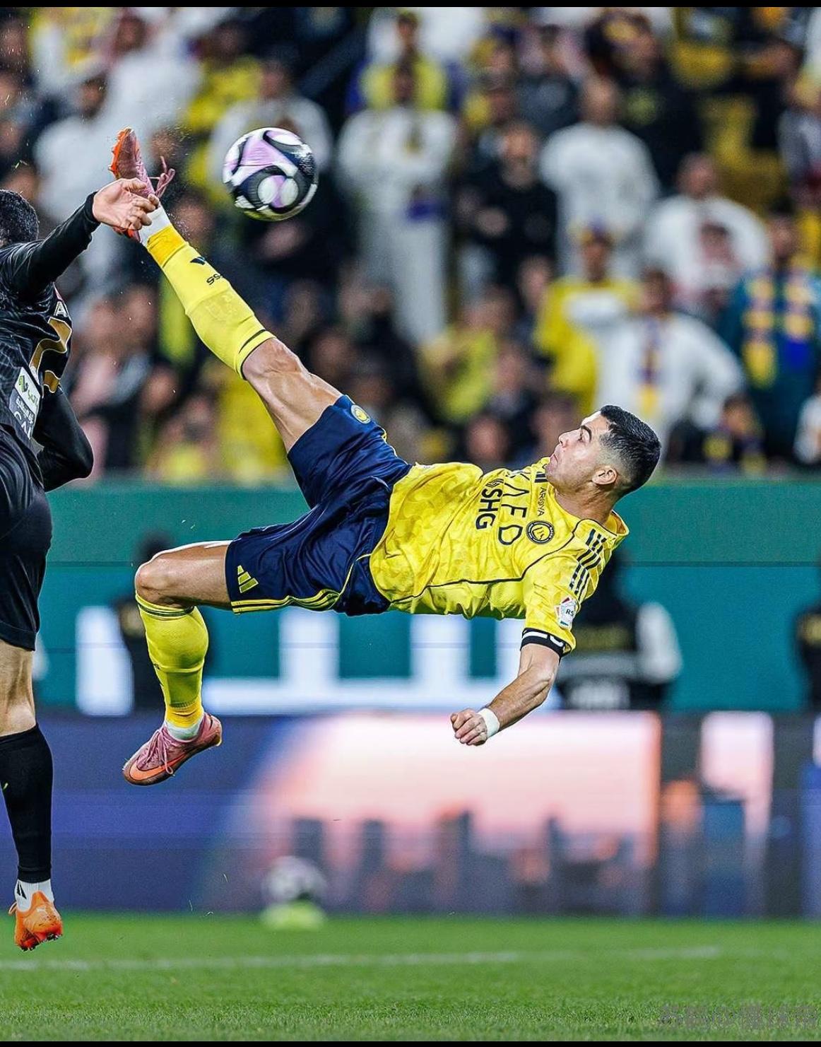 太逆天了了! 这是40岁足球员还能做岀来的动作吗? 40岁的C罗再次上演惊天倒挂金钩进球。 这动作就像当年复刻进尤文图斯那球一模一样。 这个年龄段还能做出这种进球,身体素质超强,日常训练一点也没放松。 期待C罗还能在世界杯赛场上大放异彩。