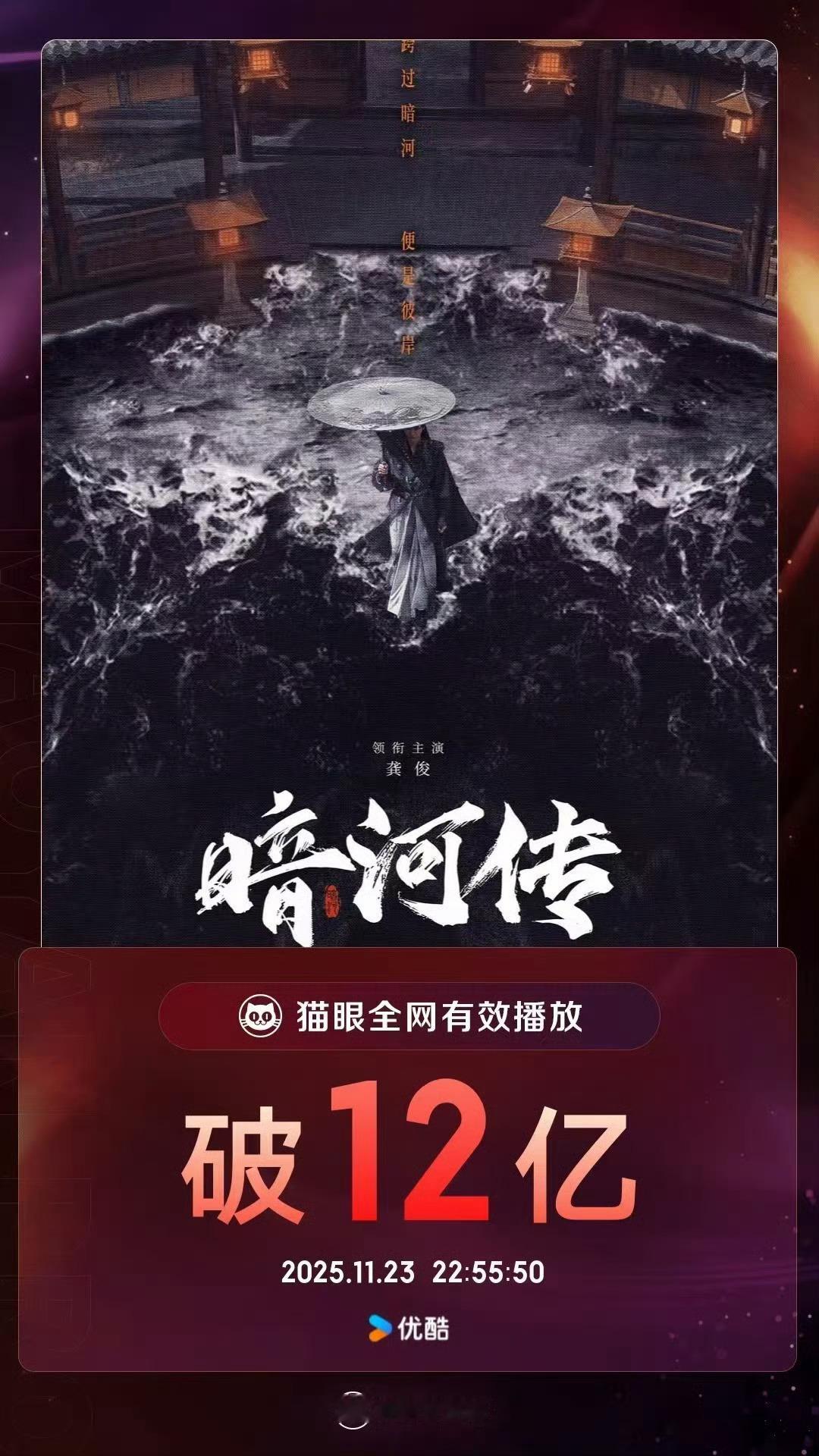 龚俊主演的电视剧《暗河传》全网有效播放量破12亿,厉害了👍。还没看过的朋友,记得看起来!好看,强推~