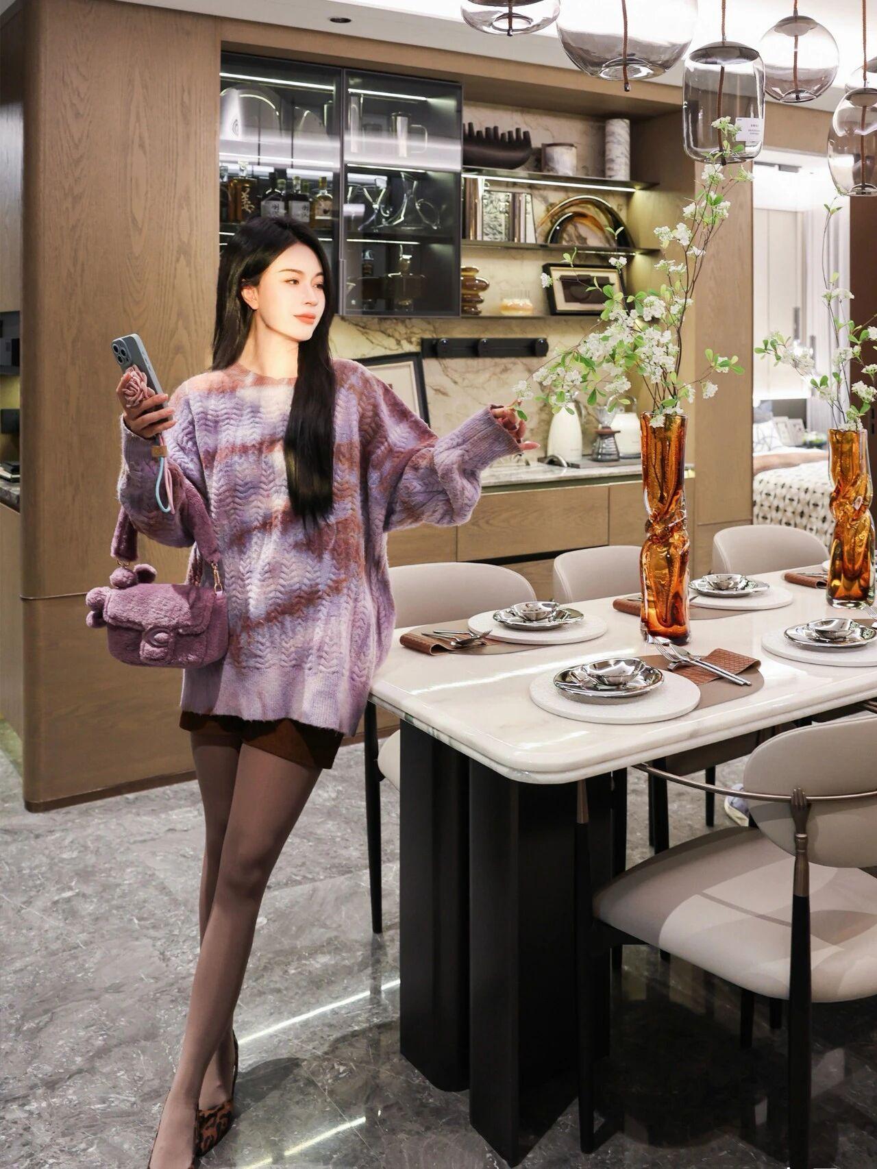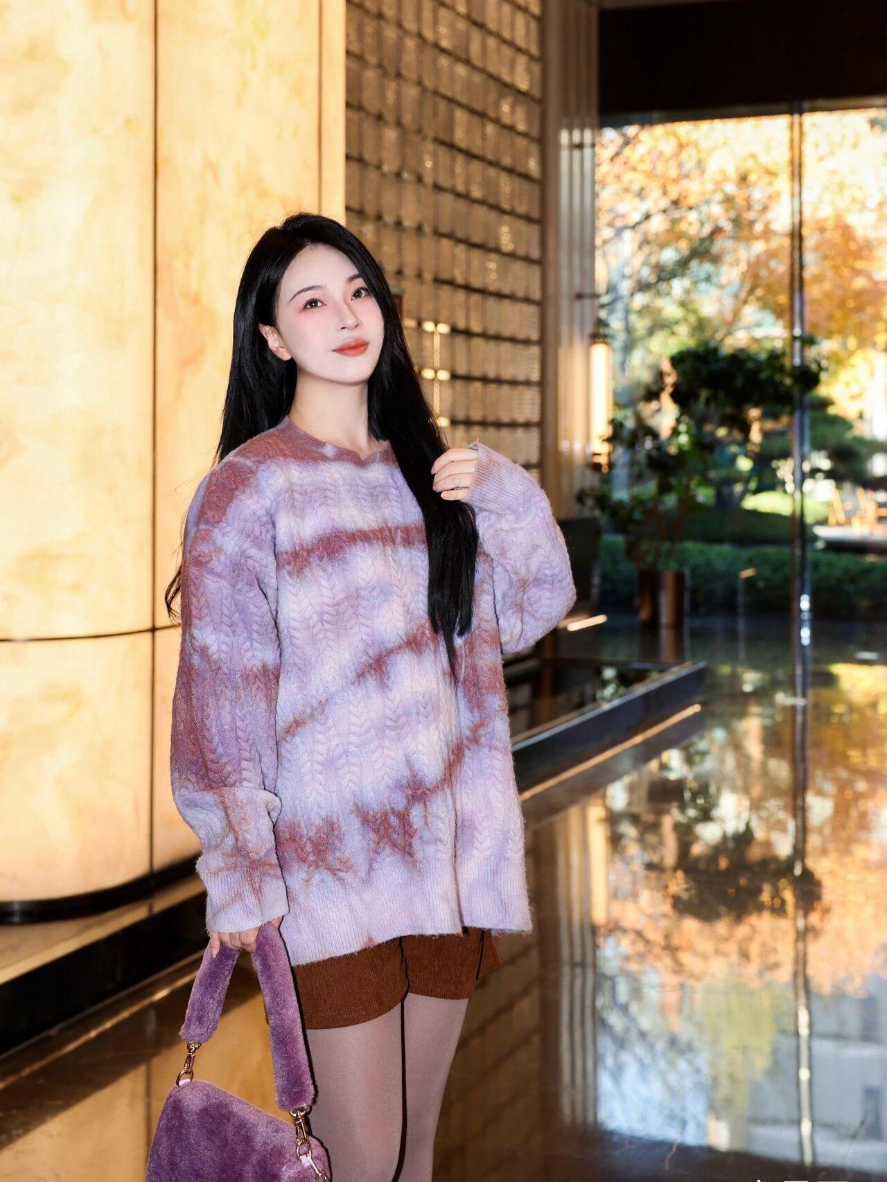 金黄的落叶在脚下沙沙作响,秋风裹挟着暖阳的温度掠过发梢。我站在铺满银杏叶的小径上,指尖轻触着从枝头飘落的枫叶,仿佛触到了秋天的心跳。 远处的小河泛着粼粼波光,像一条缀满碎钻的蓝色绸带。河岸边的木质长椅上,几片梧桐叶正随着风儿打着旋儿,落在椅背上凝结的晨露里。我望着对岸玻璃幕墙折射出的七彩光晕,忽然想起童年时外婆家那扇糊着油纸的木窗——那时的秋天,总带着桂花糖的甜香。 肩上的紫色挎包随着步伐轻轻晃动,包扣敲击出清脆的节奏。我举起手中的黄色五角星,看着阳光透过镂空的星纹,在粉色毛衣上投下斑驳的光影。这枚从街边手艺人那里买来的小玩意儿,此刻竟成了捕捉秋光的魔法道具。 高跟鞋踩过满地金黄,豹纹的纹路在落叶间若隐若现。忽然一阵风起,千万片叶子腾空而起,像一群振翅的金色蝴蝶。我张开双臂,任由落叶拂过指尖,恍惚间听见秋天在耳边呢喃:你看,凋零也可以是场盛大的舞蹈。 河对岸的写字楼里,西装革履的人们正行色匆匆。而此岸的我,却在时光的褶皱里偷得半日闲适。当最后一片枫叶打着旋儿落在脚边,我忽然懂得:原来所谓诗意,不过是愿意为一片落叶驻足的心。