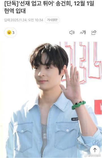 据韩媒,《背着善宰跑》演员宋建熙将于12月1日现役入伍。