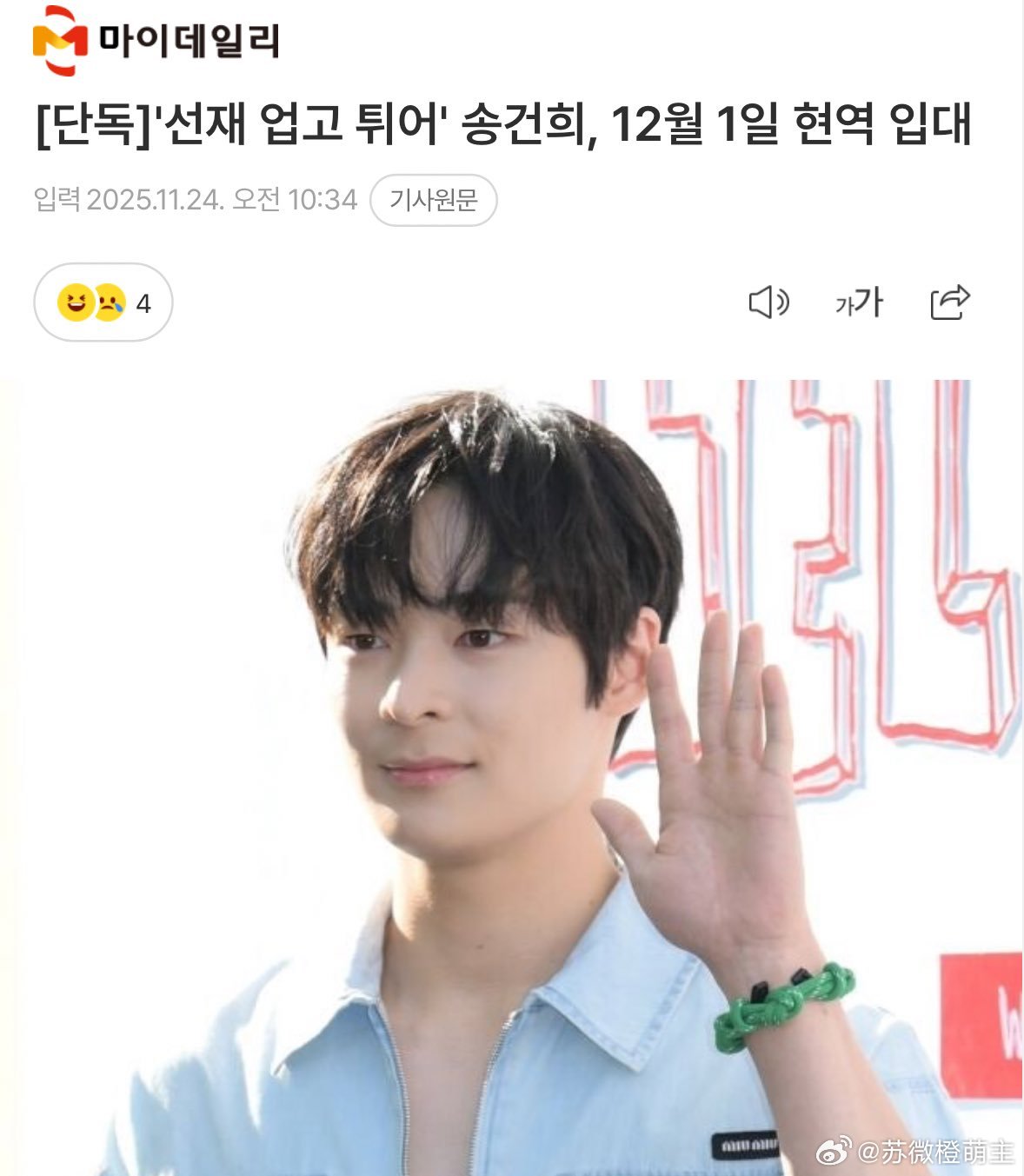 宋建熙将于12月1日入伍。