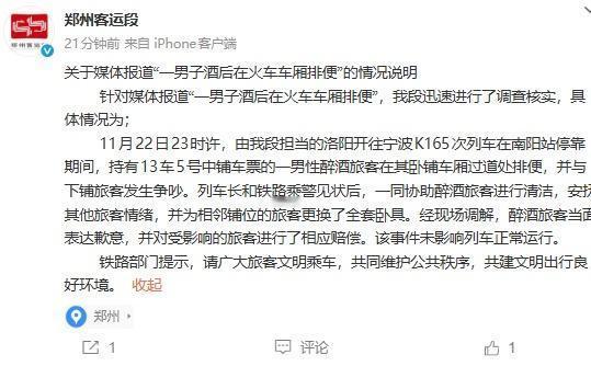 男子酒后在火车车厢排便,这事真给“醉汉”丢脸! 火车上遇上醉酒闹事的已经够闹心了,可有人居然离谱到在车厢过道排便,这事听着就让人膈应,就连见多识广的列车长都说"工作三十年,第一次碰到这种事”。有目击乘客说,事发位置旁即就是卫生间,可是一名醉酒乘客直接脱裤子开拉,拉到了旁边乘客的鞋、箱子、包等物品上。你说气人不气人?丢人不丢人?隔着屏幕都感觉一股骚臭味。 关于这件事,11月24日郑州客运段发了个通报,把事情经过讲的清清楚楚:11月22号半夜,洛阳到宁波的K165次列车停南阳站时,13车5号中铺的男乘客喝大了,直接在卧铺过道上方便,弄脏了别人的物品,污染了车箱空气,还跟下铺旅客吵了起来。好在列车长和乘警反应快,一边帮醉汉收拾烂摊子,一边安抚其他旅客,还给旁边铺位换了全套卧具。最后醉汉道歉又赔钱,没耽误火车正常走。 这事看着是“酒惹的祸”,其实是人的素质掉了线。喝多了不是免责牌,公共场合得有起码的规矩——车厢是大家共用的空间,就算自己不清醒,也不能把别人的出行体验踩在脚下。想想周围旅客,本来想好好歇会儿,突然撞见这糟心事,换谁都得犯恶心。 再说铁路工作人员,又是清洁又是调解,忙前忙后收拾烂摊子,本来不该额外操这份心。要是每个人都能控制住酒量,多想想“喝酒会不会给别人添麻烦”,这种糟心事根本不会发生。 酒这东西,小酌怡情,喝大了就容易出洋相、闯祸。出门在外,不管是坐火车还是其他交通工具,都得拎清一点:文明乘车不是口号,是实实在在的行动——少喝两杯、多存点体面,既不丢自己的脸,也不扰别人的清净。毕竟谁出门都想顺顺利利,没人愿意跟“醉酒闹剧”搭上边,你说对吧?