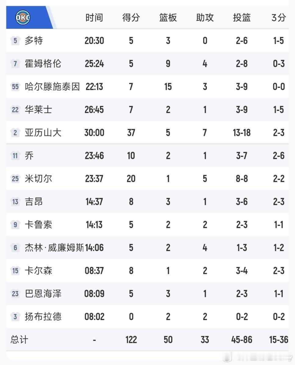 三节打卡,雷霆122:95大胜开拓者,9连胜,战绩17-1。亚历山大37分,杨瀚