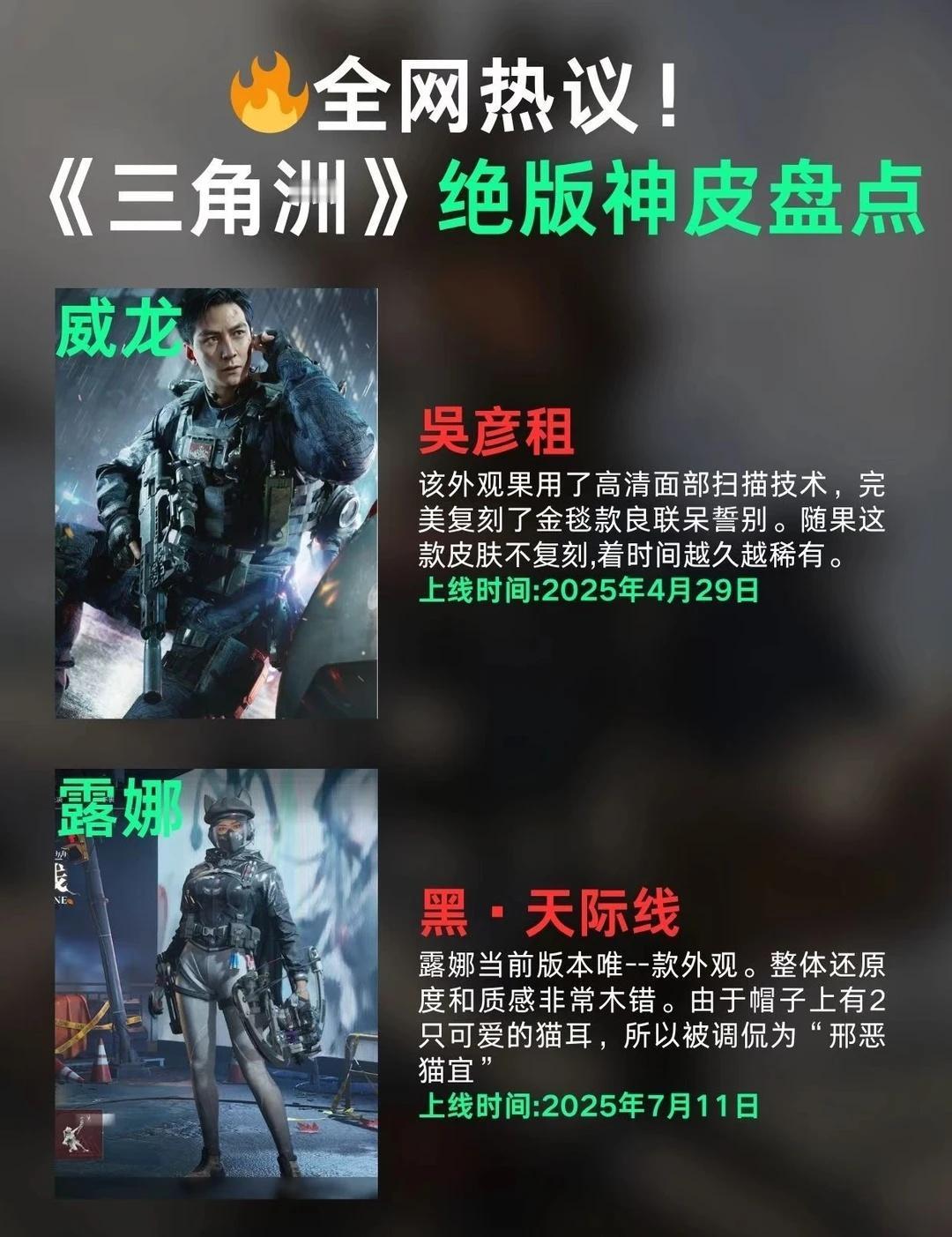 🔥全网热议!三角洲绝版神皮盘点 今天来盘一盘《三角洲》里真正值得珍藏的干员皮肤🏆 这些绝/版神皮现在有钱都不一定买得到! - 现在入坑的萌新真的馋哭了 这些皮肤你们拥有几件? 游戏收藏品 绝版皮肤 三角洲