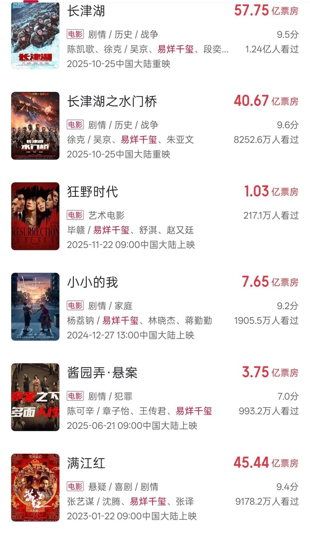 不幸言中!易烊千玺最低分!最低票房! 《狂野时代》开分了!6.5! 易烊千玺最低! 因为本身知道电影有一些抽象气质,可能观众可能并不好接受,可能会拿低分,猜测有可能是易烊千玺的作品最低了! 易烊千玺过往作品质量都不错,没有低于7分,这次的电影《狂野时代》风格脱离现实,从而脱离了观众,观众不喜欢也正常。