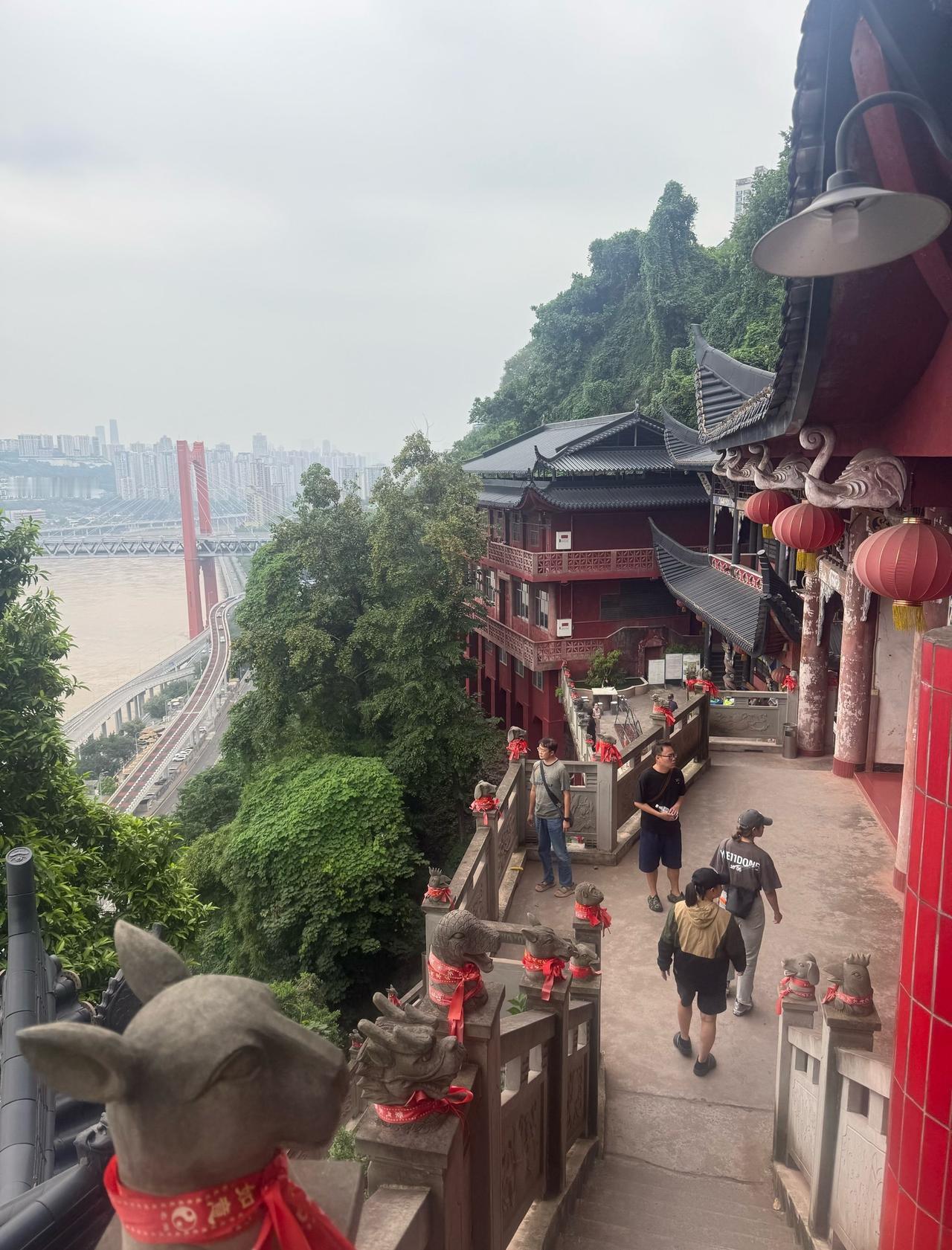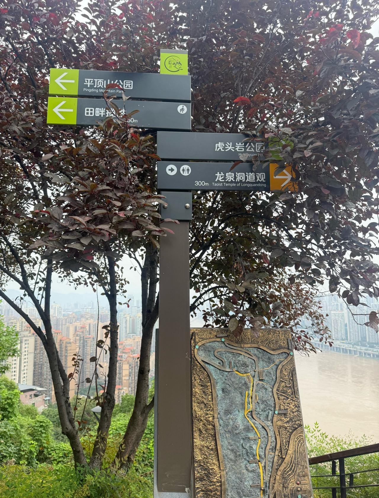 🏃🏻♀️上周末,赶在重庆还没正式降温前,带着一家老小再次去打卡了半山崖线,这次我们是从起点平顶山出发,终点是红岩村轻轨站5️⃣号口,全程基本是下坡路,不费腿。 一路风景极佳,步道两侧开满了墨西哥鼠尾草,拍照很出片,可惜天气不是特别给力。一眼望去,江对面全是密密麻麻的房屋🏠,小孩哥说是搭建的积木,挺有想象力的,哈哈 途中会经过悬空寺—龙泉洞,以及红岩村大桥🌉,快约上朋友们来打卡,冲冲冲啊[加油] 徒步攻略: 1️⃣自驾的话可导航平顶山公园,将爱车停在公园大门外马路两侧停车位(离步道入口近),或者停到公园山顶上的露台停车场,然后步行到公园大门。 2️⃣亦可乘坐轨道交通1号线到高庙村,2号口出来免费换乘422公交车到终点站平顶山公园下车(可通过“车来了”微信小程序查看车辆预计到达时间) 3️⃣平顶山公园右手边就是步道入口,穿过足球场(时间充裕可以驻足观看球赛)就看到一个休息区,有商贩卖吃的、玩的,有坐着闲聊的,有老年人在合唱奏乐,还有小孩在放风筝,感觉疲惫的身心在这里得到了放松。穿过休息平台,往右边一直往前走就是半山崖线。 4️⃣一路上在每个岔路口都有指路标识,在半程有个“崖顶观江”的休息平台,可以在这里歇歇,拍照打个卡👉往前走就有公共厕所👉途中会经过一个悬空寺庙——龙泉洞,这里是渝中区和沙坪坝的分界,可免费打卡龙泉寺(未成年人不得入内)👉原路返回后继续往前走即可到达红岩村大桥,在镂空步梯处打卡经典拍摄机位👉这时可以选择乘坐旁边的轻轨(红岩村5号口)回家,也可以往上徒步至虎头岩公园。