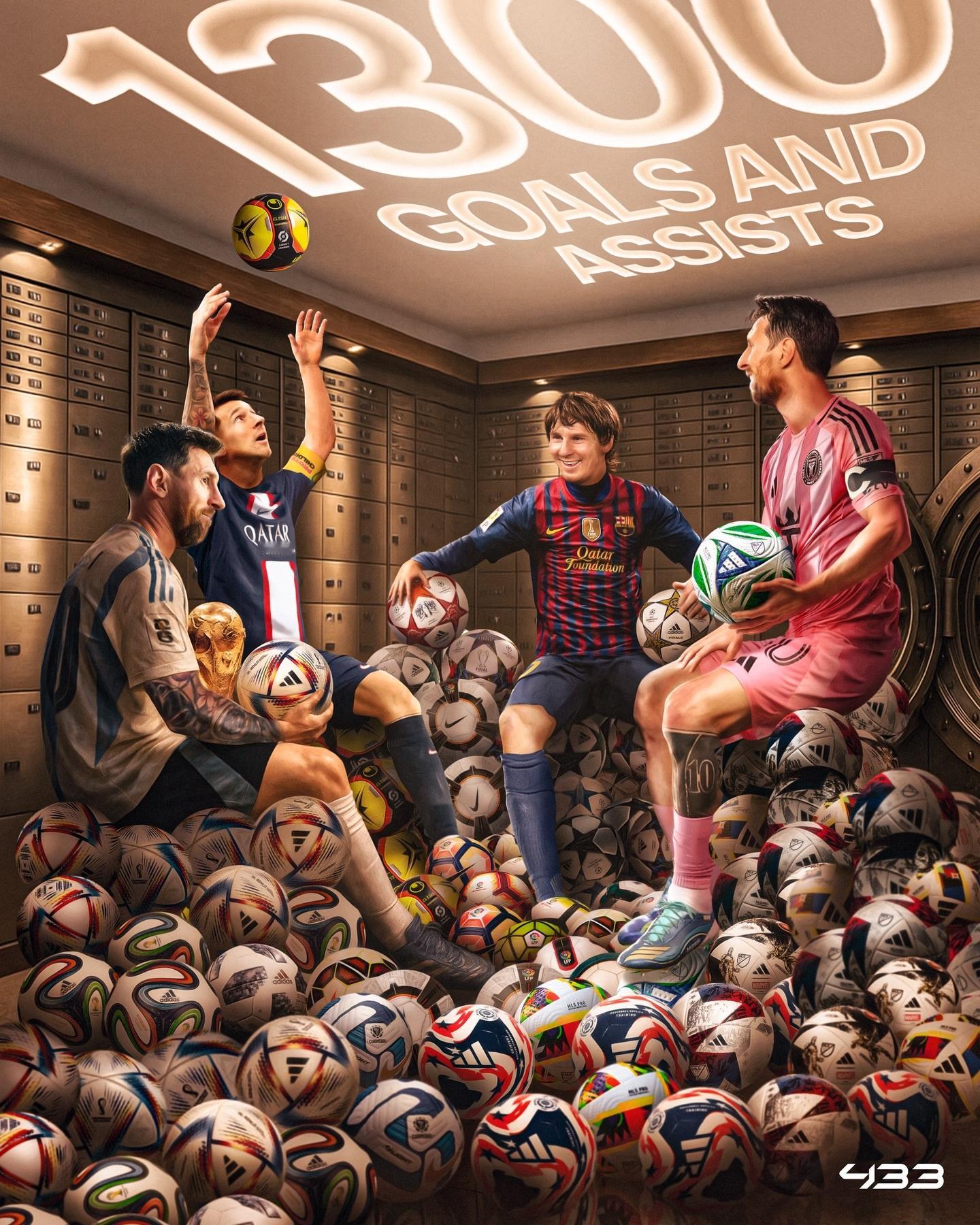 ⚽️➕🅰️🅰️🅰️ 今日传奇时刻!🔥🚨生涯贡献进球达到1300个,历史最多 🤯又一重大里程碑💪累计数据统计:⚽️ 896粒进球🅰️ 404次助攻
