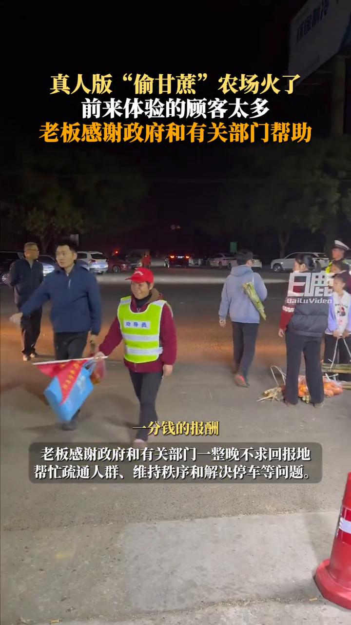 真人版"偷甘蔗"农场火了,前来体验的顾客太多,老板感谢政府和有关部门帮助。 白鹿视频。 11月23日四川眉山,感谢青神县政府,这些天我看到他们来了四五十个人,公安、交警、村委会、街道派这些全部都来了,从来没问过我要一分钱的报酬。像疏通交通、停车这个问题,公安警察巡逻这些。
