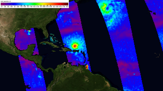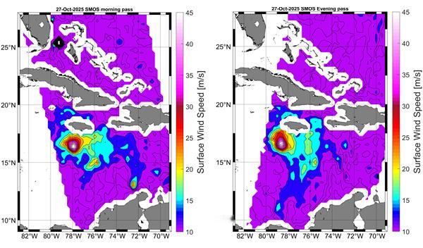 【ESA:卫星遥感技术揭示热带风暴内部风场结构】从微风到毁灭性气旋,风始终是塑造地球天气与气候的关键要素。卫星观测使人类能够从太空捕捉这些动态模式,揭示其结构、强度与变化规律。热带风暴与风速监测热带风暴是发生在至少27°C的暖水海域上的强大天气系统,最大持续风速介于63至118公里/小时之间,可引发破坏性大风、强降水与风暴潮。这类系统属于结构化低压系统,其形成与强度直接关联于海面温度、大气压强、风场型态和水汽含量等环境参数。当风速超过118公里/小时,风暴将依据不同海区被归类为飓风(北大西洋与东北太平洋)、气旋(南太平洋与印度洋)或台风(西北太平洋),并按萨菲尔-辛普森飓风风力等级划分强度等级。精确获取风速数据对风暴定级和灾害防御至关重要。地面观测虽能提供关键实时数据,但天基测量可实现全球范围的一致覆盖,特别是在热带风暴生成与发展的开阔洋面上空提供关键观测。天基测风技术体系传统天基测风主要采用雷达散射计与光学成像仪。各国与区域气象机构发布的业务化热带风暴预报依赖于多源观测与数值模式。近几十年来,新型测风技术持续发展,包括激光雷达与微波成像仪的应用。通过"地球探索者"计划与第三方任务,欧洲航天局(ESA)提供具有科研品质的卫星数据,扩展全球覆盖能力并深化对风暴过程的理解,支撑更广泛的预报系统发展。ESA"土壤湿度与海洋盐度"(SMOS)卫星搭载L波段综合孔径微波成像辐射计(MIRAS),工作频率为1.41 GHz。自2018年起,ESA提供SMOS风场数据服务,可从亮温测量数据中反演海面风速(亮温参数综合了海面盐度、温度与粗糙度信息)。在极端大风条件下,SMOS的L波段辐射计信号不发生饱和且对降雨敏感性较低,可为传统传感器提供有效补充观测。目前提供三类产品:近实时2级条带风速产品(SMOS L2WS NRT),空间采样率0.25°×0.25°,从观测后4至6小时内发布;风圈半径定位产品(SMOS WRF),提供每象限34节(17米/秒)、50节(25米/秒)和64节(33米/秒)风速圈的10分钟最大持续风速(节)及半径(海里),同样于4至6小时内发布;3级日平均风速产品(SMOS L3WS),为每日的合成图,次日发布。C波段合成孔径雷达(SAR)数据也可用于反演热带风暴风速。哨兵-1号(Sentinel-1)二级产品提供海面风速与风向网格估计(海洋风场)以及包含风场信息的二维海浪谱(海洋涌浪谱)。通过ESA第三方任务计划可获取RADARSAT数据,涵盖RADARSAT-1与-2完整存档及编程数据,以及ESA存档的RADARSAT-2数据。此外,ESA"低温卫星"(CryoSat)虽设计用于极地冰盖监测,其雷达高度计通过测量海面粗糙度反演风速,为海洋气象产品作出贡献。上述载荷共同构成近实时海洋表面风场观测体系,为理解并预报热带风暴行为奠定基础。风暴垂直结构探测ESA与日本宇宙航空研究开发机构(JAXA)联合实施的"地球云气溶胶与辐射探测器"(EarthCARE)任务,正为揭示热带风暴垂直结构提供新认知。其云廓线雷达(CPR)与多光谱成像仪可探测风暴系统内云层的高度、组成与分层结构。2025年9月22日,EarthCARE的CPR获取了台风"拉加萨"的垂直廓线,成像仪同步捕获云层分布。ESA"风神"(Aeolus)卫星是全球首个实现全球尺度风廓线观测的任务,搭载多普勒测风激光雷达(ALADIN)。尽管任务已于2023年7月结束,ESA仍在F阶段持续提供数据,旨在提升产品质量并纳入最新算法演进,供数值天气预报模式与大气科研使用。基于Aeolus成果,ESA已选定"风速雷达云探仪"(WIVERN)作为第11颗地球探索者卫星。WIVERN采用圆锥扫描多普勒雷达,将首次实现云层内部风场的全球观测,结合降水与云廓线数据,为热带风暴理解与模拟带来突破性进展。EarthCARE、Aeolus与WIVERN标志着测风能力从海面到云顶全三维结构的跨越。数据应用平台与算法开发法国海洋开发研究院(Ifremer)与OceanScope联合开展的CyclObs项目(由ESA、欧洲气象卫星组织、法国国家空间研究中心等资助),致力于开发基于C波段SAR反演海面风速与风暴结构参数的算法,并将L波段辐射计(如SMOS)观测与SAR数据进行协同定位与比对。海洋物理与卫星遥感实验室(LOPS)数据可视化门户提供多源卫星任务反演的全球海面风速数据,综合SMOS、哨兵-1号与RADARSAT-2等雷达卫星数据,并补充MetOp系列卫星的气象产品。ESA委托开发的哨兵应用平台(SNAP)支持哨兵系列与SMOS等多种传感器的数据可视化和分析。应用案例:2025年飓风"艾琳"2025年8月,飓风"艾琳"成为跨越大西洋的大型强风暴。8月16日,风暴在背风群岛附近达到峰值强度,1分钟最大持续风速达260公里/小时,随后沿美国东海岸北上,影响弗吉尼亚、北卡罗来纳与马萨诸塞州,以及加拿大新斯科舍与纽芬兰地区。8月11日,哨兵-1号SAR在北大西洋上空探测到当年大西洋飓风季首个飓风。8月11日至17日,哨兵-1号与RADARSAT-2捕获到"艾琳"最大持续风速(VMAX)的增强过程,SATCON与ATCF估计其强度达5级,SAR测量验证了该估计。8月19日起,VMAX值逐渐下降,系统最终在加拿大纽芬兰沿岸消散。8月17日,SMOS的MIRAS仪器在波多黎各外海观测到超过40米/秒的表面风速。这些SMOS、哨兵-1号与RADARSAT-2的观测有效补充了传统气象观测,提升了热带风暴风场预报与理解的综合能力。未来发展计划欧洲将进一步业务化Aeolus概念,实施欧洲气象卫星组织极地系统风神星座(EPS-Aeolus)。ESA将 sequential 发射两颗卫星,均搭载多普勒测风激光雷达,延续Aeolus的成功经验。WIVERN作为第11颗地球探索者卫星的