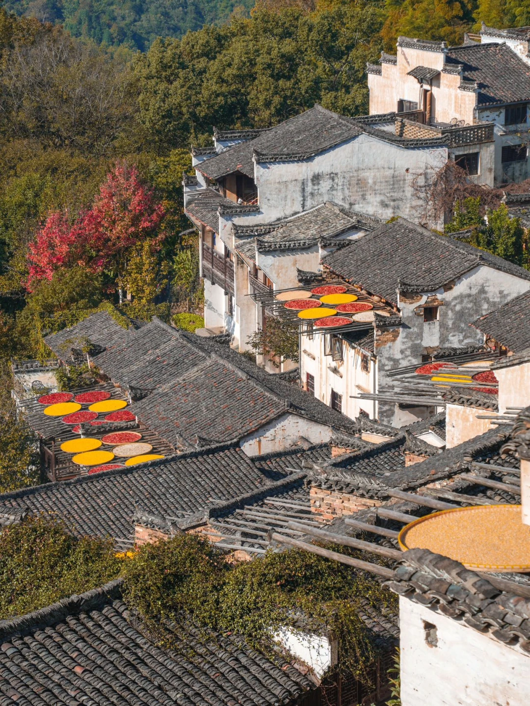 · 上午-下午: 从石城出来后,前往 【篁岭】。乘坐索道上山,沉浸式体验“晒秋”民俗。辣椒、玉米、皇菊绘成的五彩画卷,与徽派古村相映成趣,是婺源秋日最浓墨重彩的一笔。