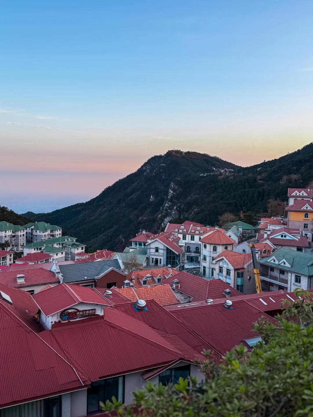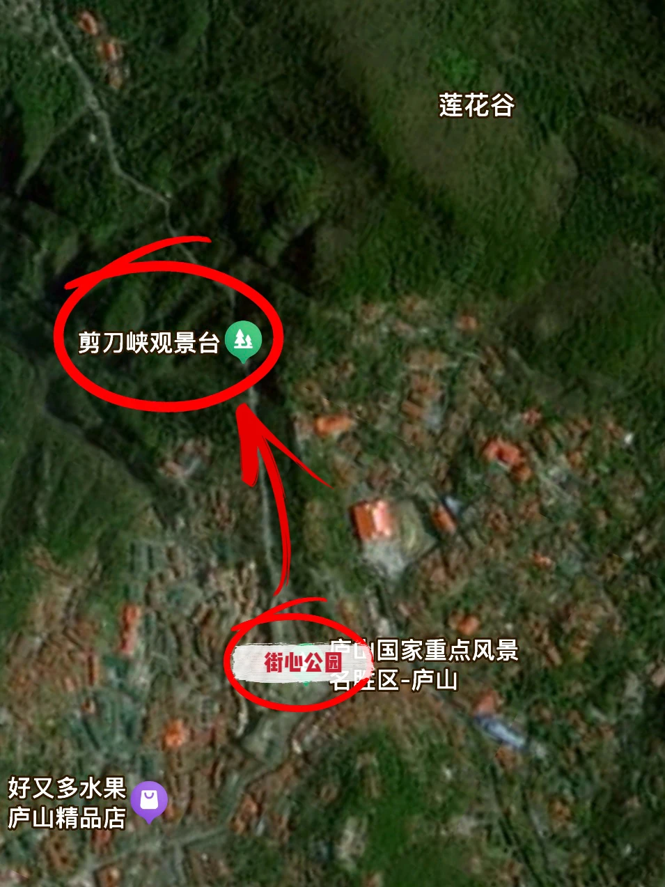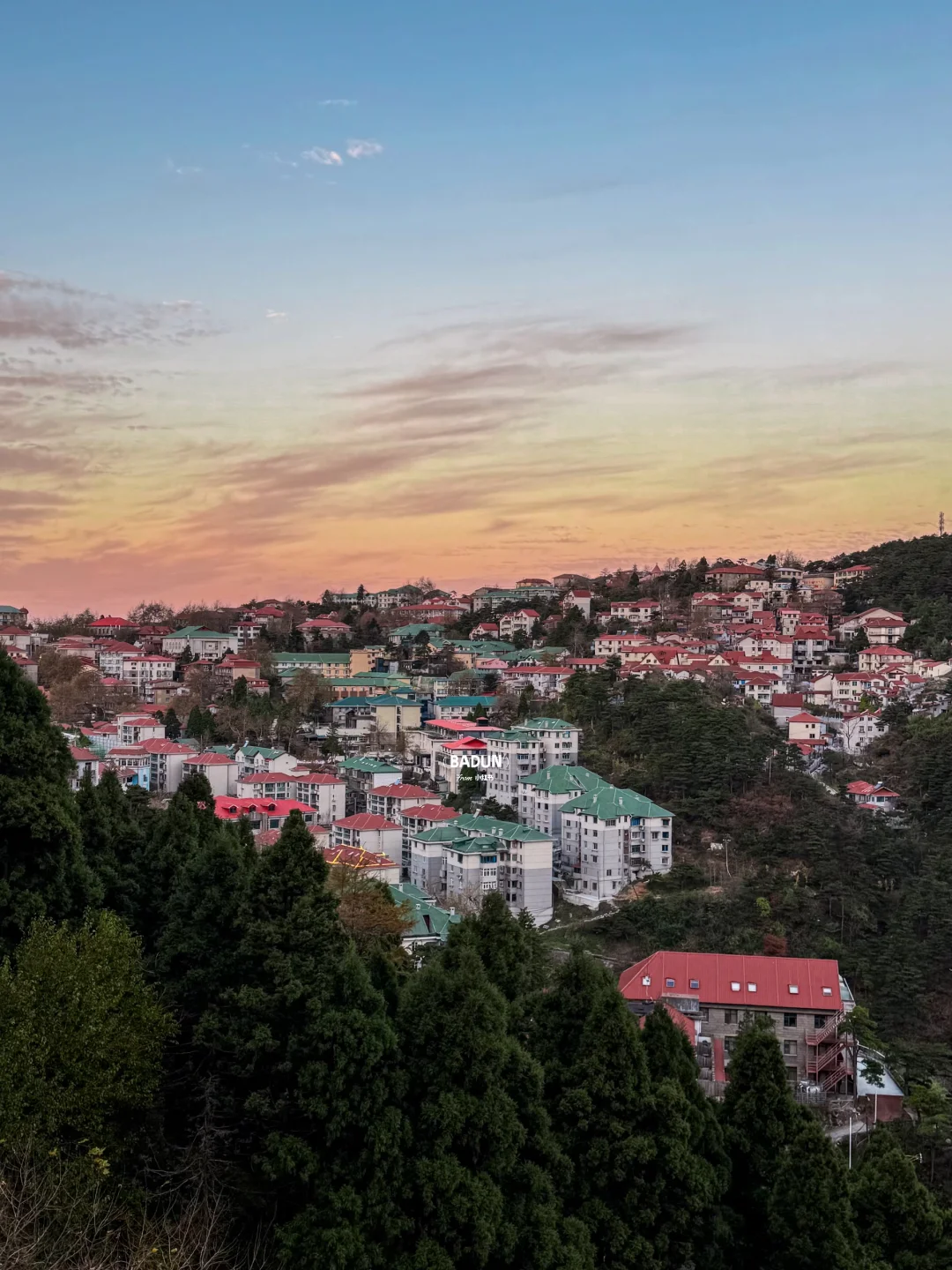 🅿️具体位置图6,从牯岭镇街心公园步行约600米。是位于马路边的一个开放式观景台,正好从另一角度远眺整个牯岭镇,整个小镇建筑挂在山顶,在朝霞照耀下非常漂亮。