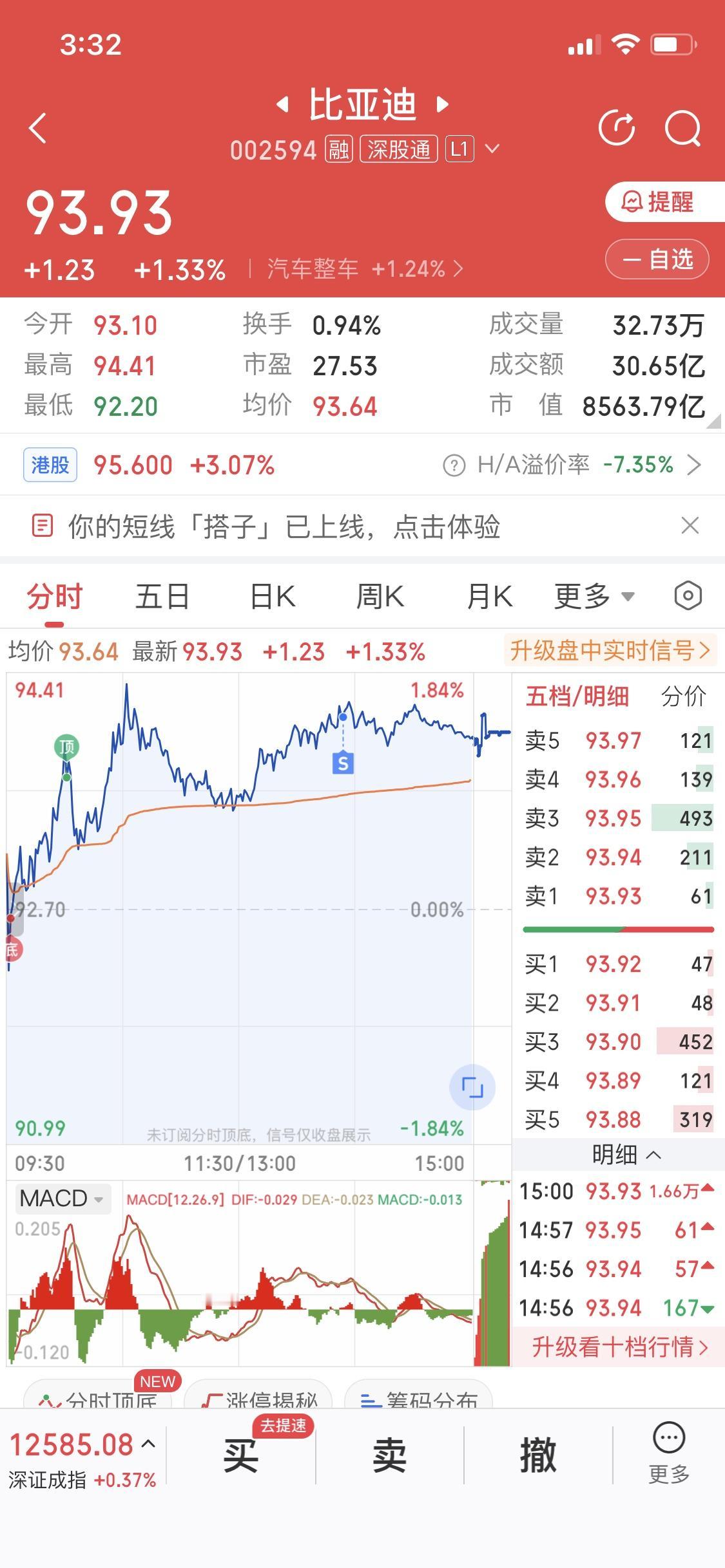 11月24日比亚迪上涨1.33点,处于下跌趋势的震荡模式。近期比亚迪股价波动明显,本月就两次探底95元。2025年以来,锂电池指数涨幅达79.34%,宁德时代股价涨了50.86%,可比亚迪仅涨2.44%,在储能和锂电池板块上涨时,它的表现就像隐身了一样。 当天A股市场早盘高开回落,三大指数集体翻绿,算力硬件回落,工业富联跌停。不过比亚迪作为新能源汽车产业龙头,有既往万亿市值俱乐部的底蕴,说不定触底反弹就差一个合适的风口。