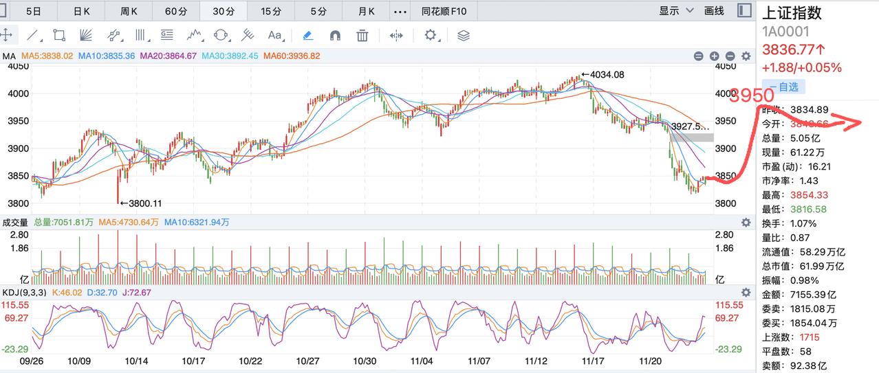 机会来了就要抓住!上周单边下跌让很多人下破了胆,今天一有反弹就开始兴奋,一下跌就赶紧割肉,这是典型的倒在黎明前,只有坚信自己判断的人才能在今天持仓和加仓,这样的判断需要定力,也需要有大心脏,同时还得承担预测失败后的压力! 炒股炒到最后就是炼心,当别人看多的时候保持冷静,当市场惊恐的时候,就要理智判断大势,大势对了,就可以走得更远,本次反弹看到3900上方,至于能否到,只能走一步看一步了,这个时候卖出就太可惜了!