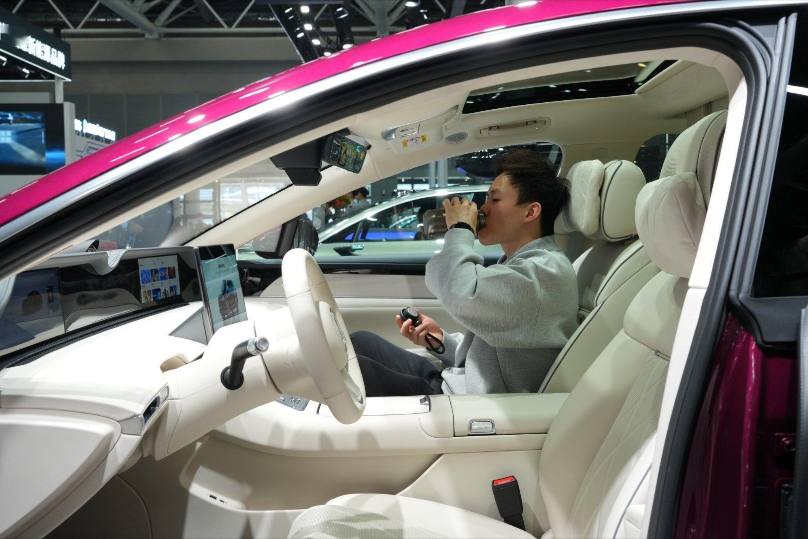 在人人忙着拍照发社交媒体的车展,谢思埸却专注于车辆本身。他带着保温杯,以研究者的姿态仔细打量每辆感兴趣的车,甚至坐进去体验良久。这种沉浸式的观展方式,展现了他作为运动员的专注特质。