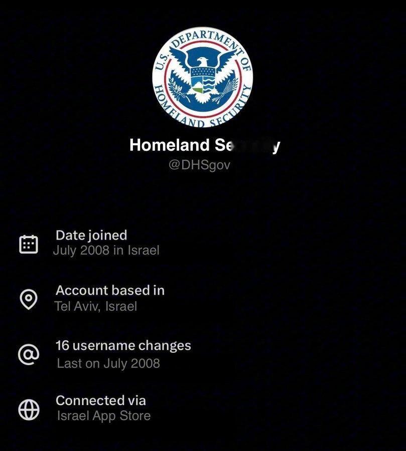 这夺舍很很彻底,美国国土安全部推特账号居然由以色人在特拉维夫掌控着。不知白宫账号会不会也漂移到纽约华尔街?要是特朗普个人账号显示在莫斯科的话,那就真是实锤了!