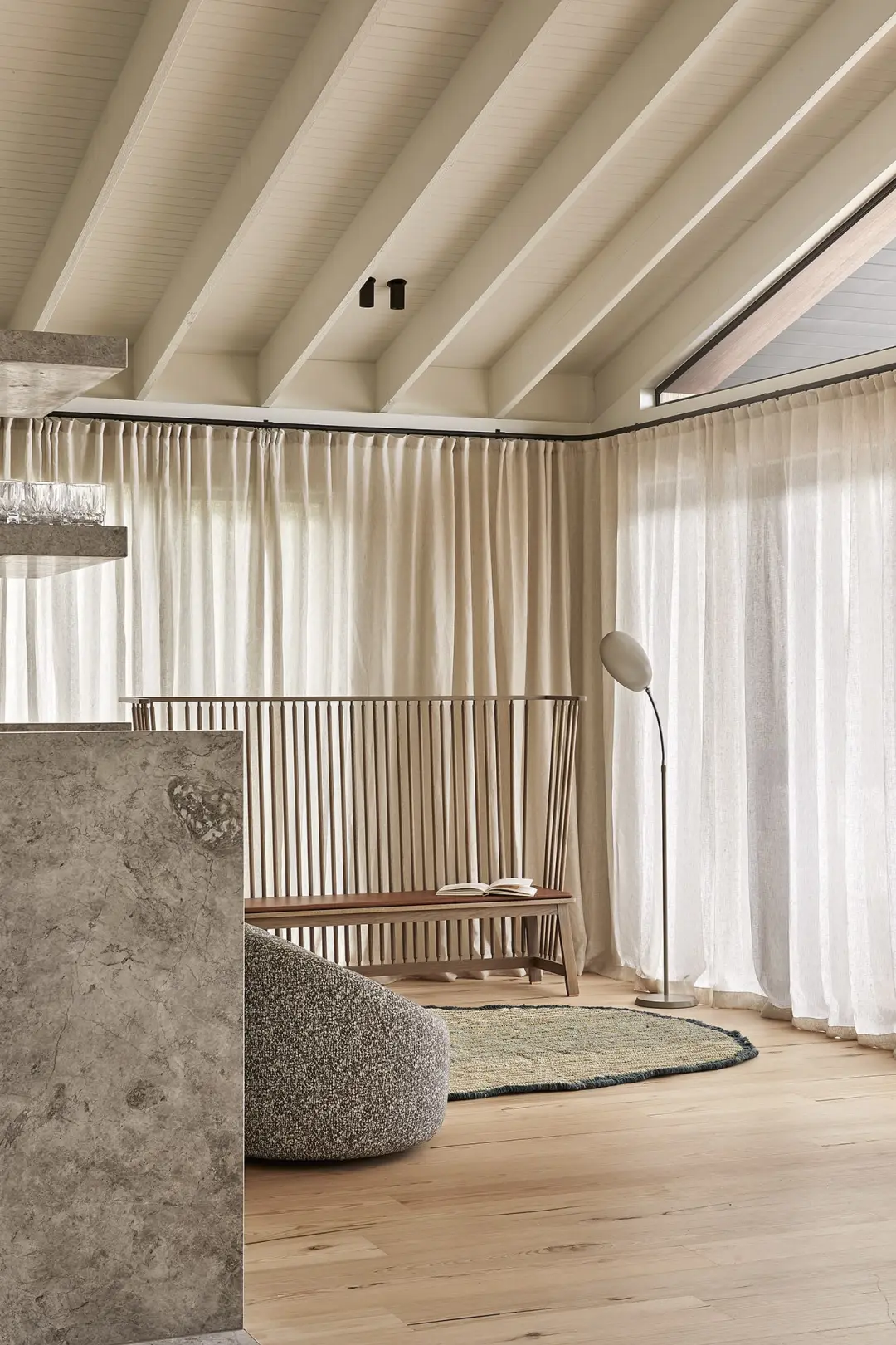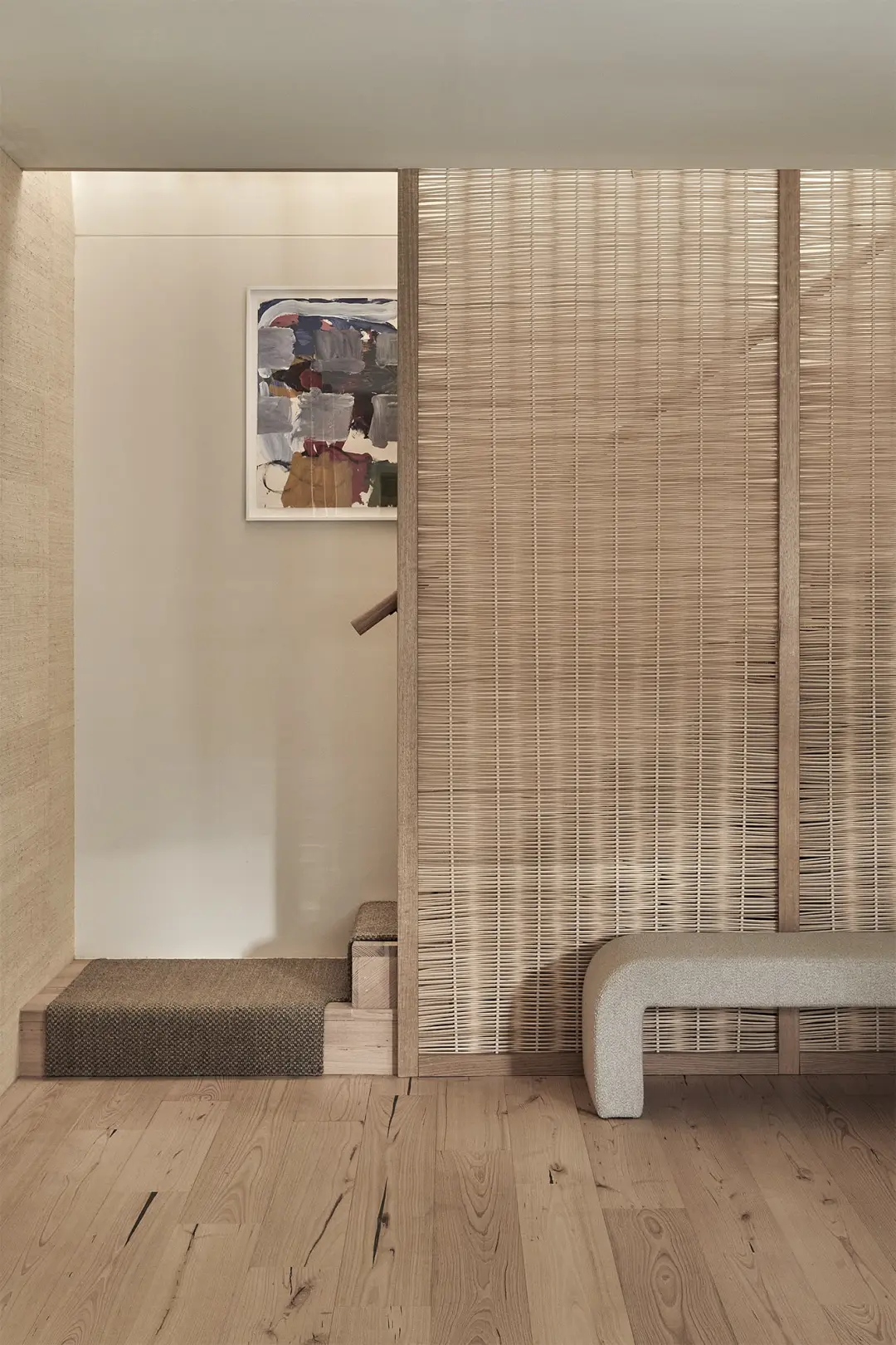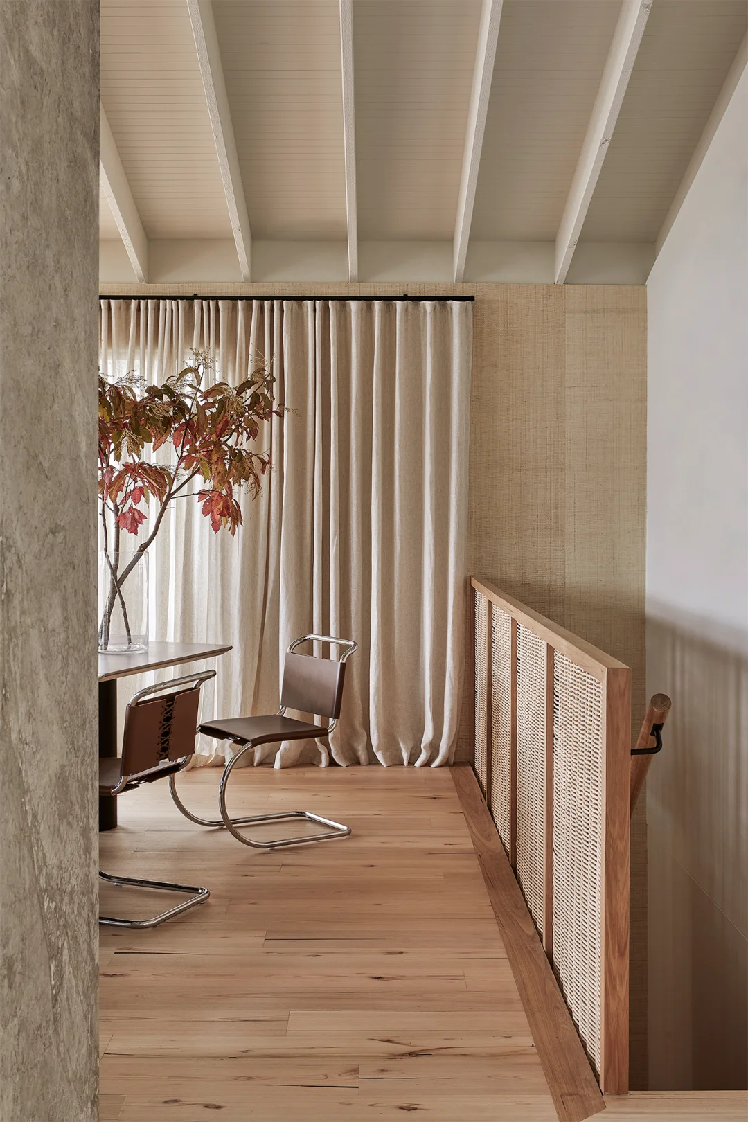 诧寂风格的家给人一种安静的满足感 在功能上设计师用简单的材质为业主打造了一个舒适的家 整体以原木色为主 配合光影 营造通透清爽的氛围
