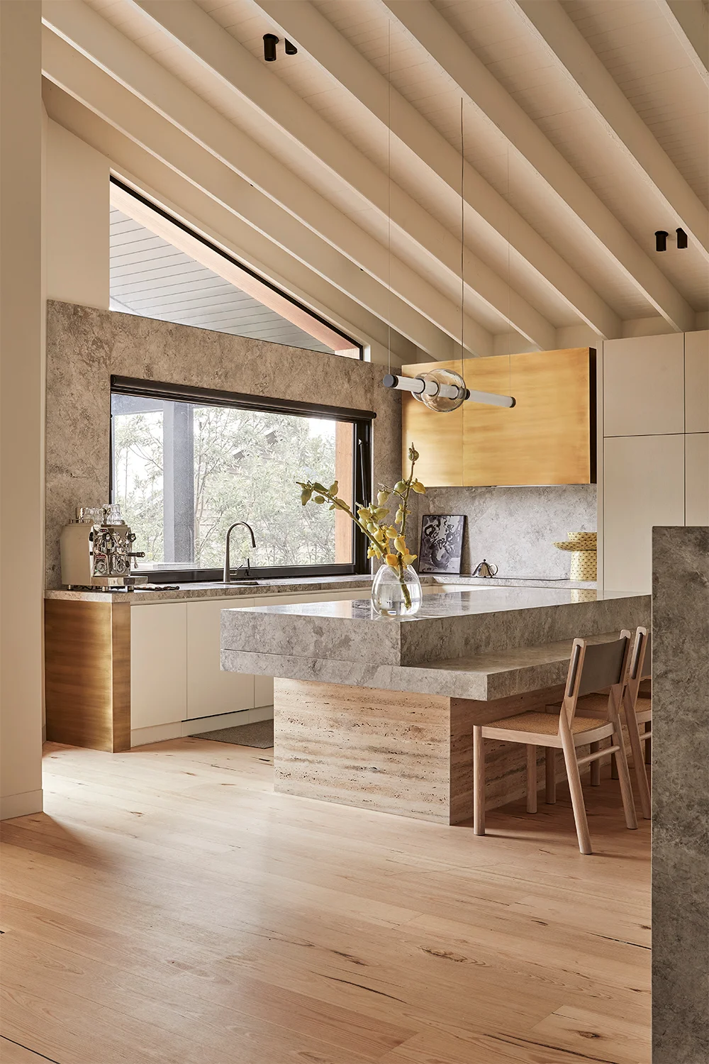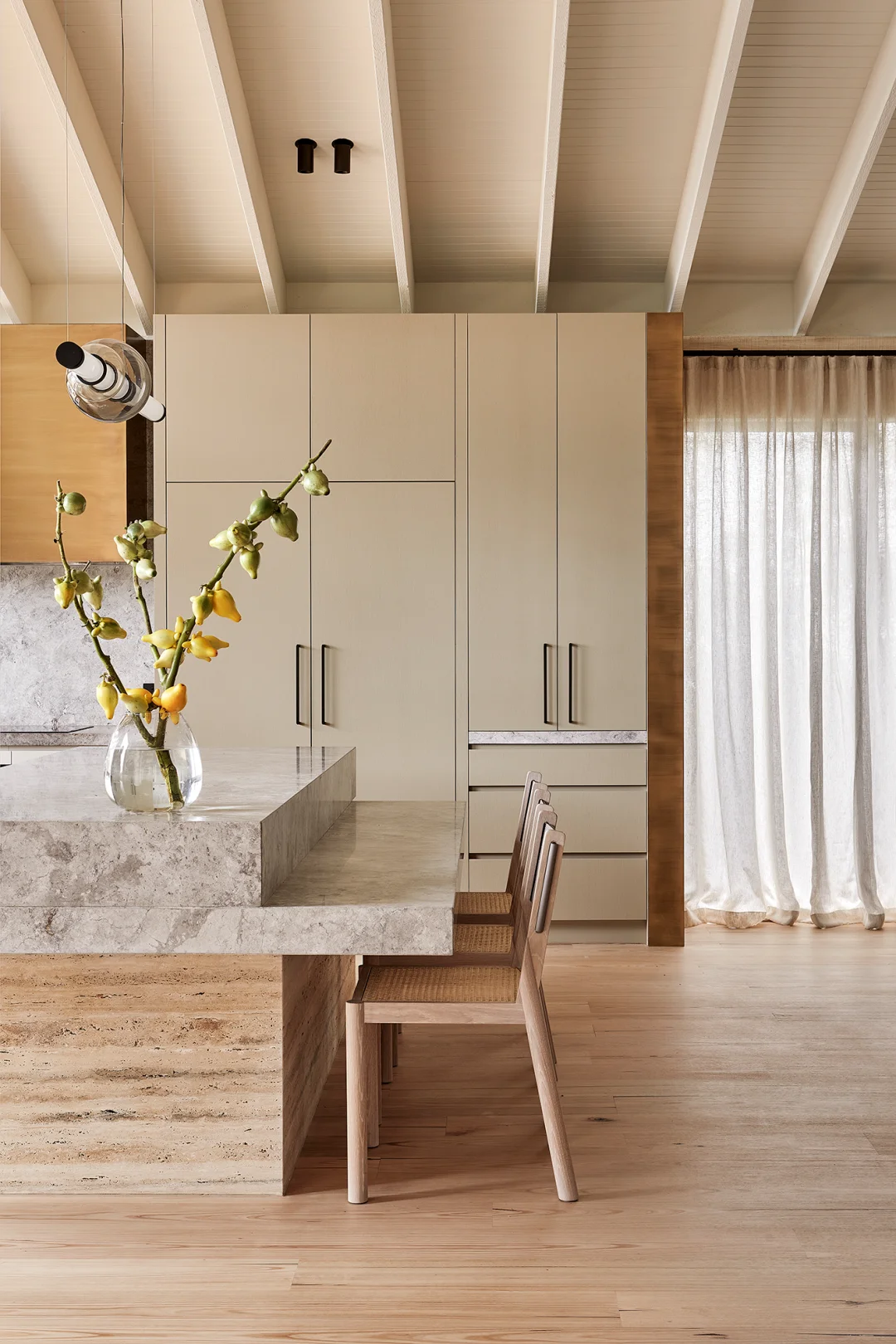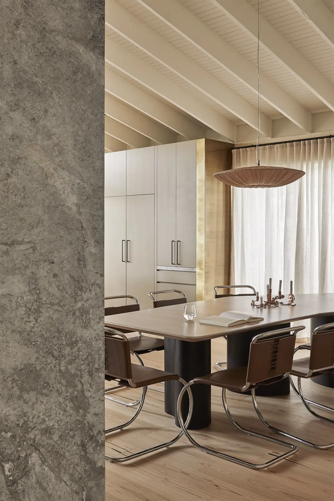 诧寂风格的家给人一种安静的满足感 在功能上设计师用简单的材质为业主打造了一个舒适的家 整体以原木色为主 配合光影 营造通透清爽的氛围