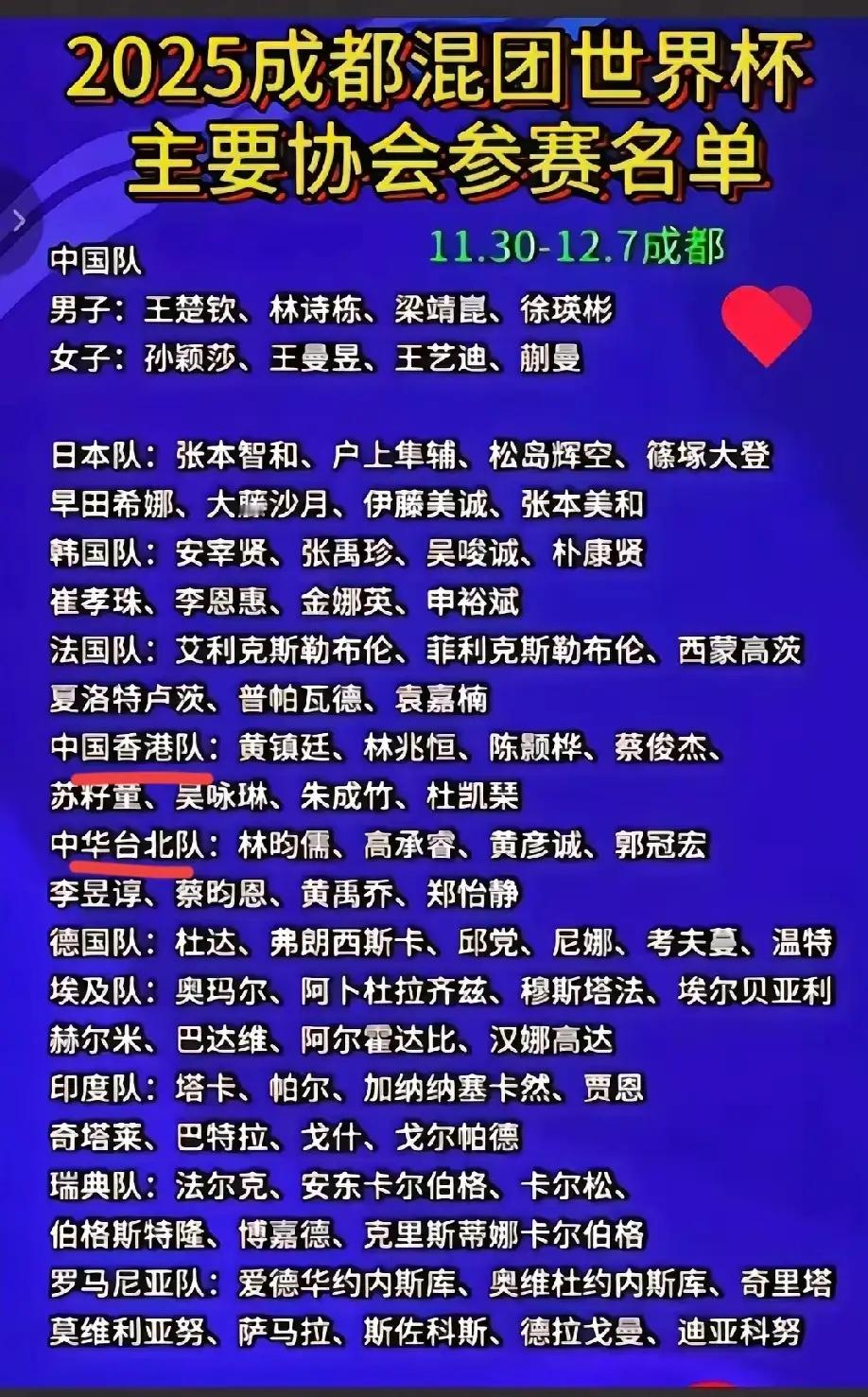 王励勤的大布局下,陈幸同落选了!陈垣宇也没有在名单中。这次的成都2025年乒乓球混团世界杯,国乒队派出以孙颖莎和王楚钦为代表的男团女团总共八人。女团有孙颖莎、王曼昱、王艺迪、蒯曼。男团组成:王楚钦、林诗栋、梁靖崑、徐瑛彬!我发现陈幸同没有在名单中。混团比赛不同于其他比赛,这里面除了单打,还要有双打,包括女双,混双。很显然,陈幸同在双打方面有欠缺。蒯曼双打有优势,女双、混双都可以。男团这边,最近表现不错的陈垣宇没有去。可能为了稳妥一些,混双还是蒯曼和林诗栋搭档比赛。徐瑛彬我不太了解,为什么让他去不让陈垣宇去呢?