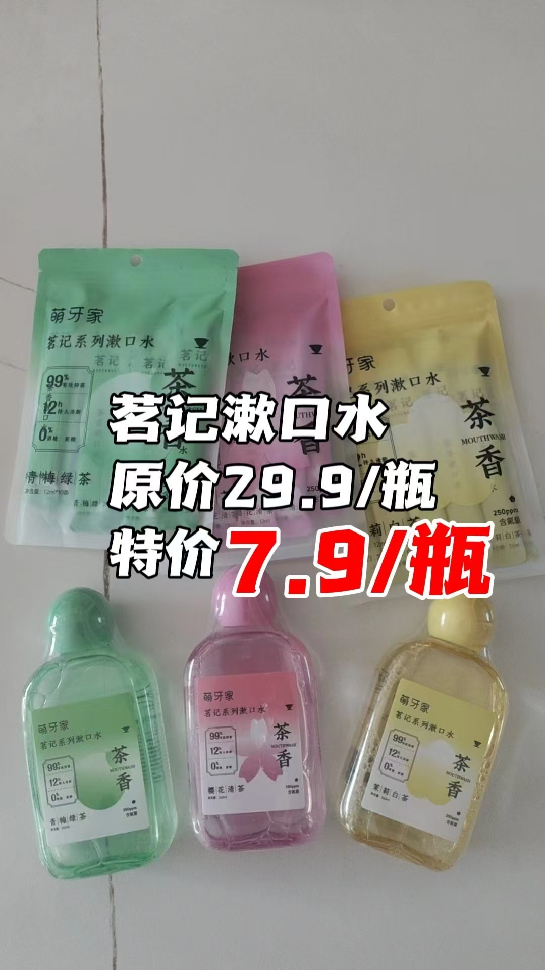 夹人们,宣布个事儿!最近最震撼、最惊艳我的东西出现了!就是!萌牙家的!漱口水!我非常非常非常喜欢!!!原.价本来要29.9现在才7.9元/瓶3个口味各来一瓶可以用2个月确实是够划蒜!!!一句话,我将无!限!回!购!说实话,是我之前对漱口水的认知浅薄了我就买过过李施德林的,39.9一瓶,那个用起来整个嘴巴舌头都疼但是把,我总感觉用刺激的,能把口腔里的东西杀得干净一点......事实啪啪打脸......咱其实能舒舒服服地,把嘴巴搞干净午休起来用它漱口,完全不辣嘴留香还特别特别持久下午跟人说话的时候,感觉自己清爽、帅气了10分顺便再介绍一下人类最伟大的发明之一电动牙刷我这种彻头彻尾的懒人,已经完全离不开它了夹人们说,每天上班多累啊?累到晚上睡前都懒得刷牙!现在有了它,不用动脑往嘴里一塞就可以边振动边刷手机更牛掰的是什么???它有3档力度,刷牙怕痛就用敏感档,还有7级防水,这啥概念?你可以一边冲澡一边刷牙,省时又省力外面卖219,我这里特.价139还配2个刷头Pr特意交代说,只要备.注“章北海”就送4只他们家的靓白牙膏!而且,包用2年以上2年内坏了,能免!费!换!新!有漱口水、电动牙刷需求的夹人们!请给大气的萌牙家一个机会,你一定会回来感谢我的对了,别忘了去下面拿圈,圈后才是特.价!