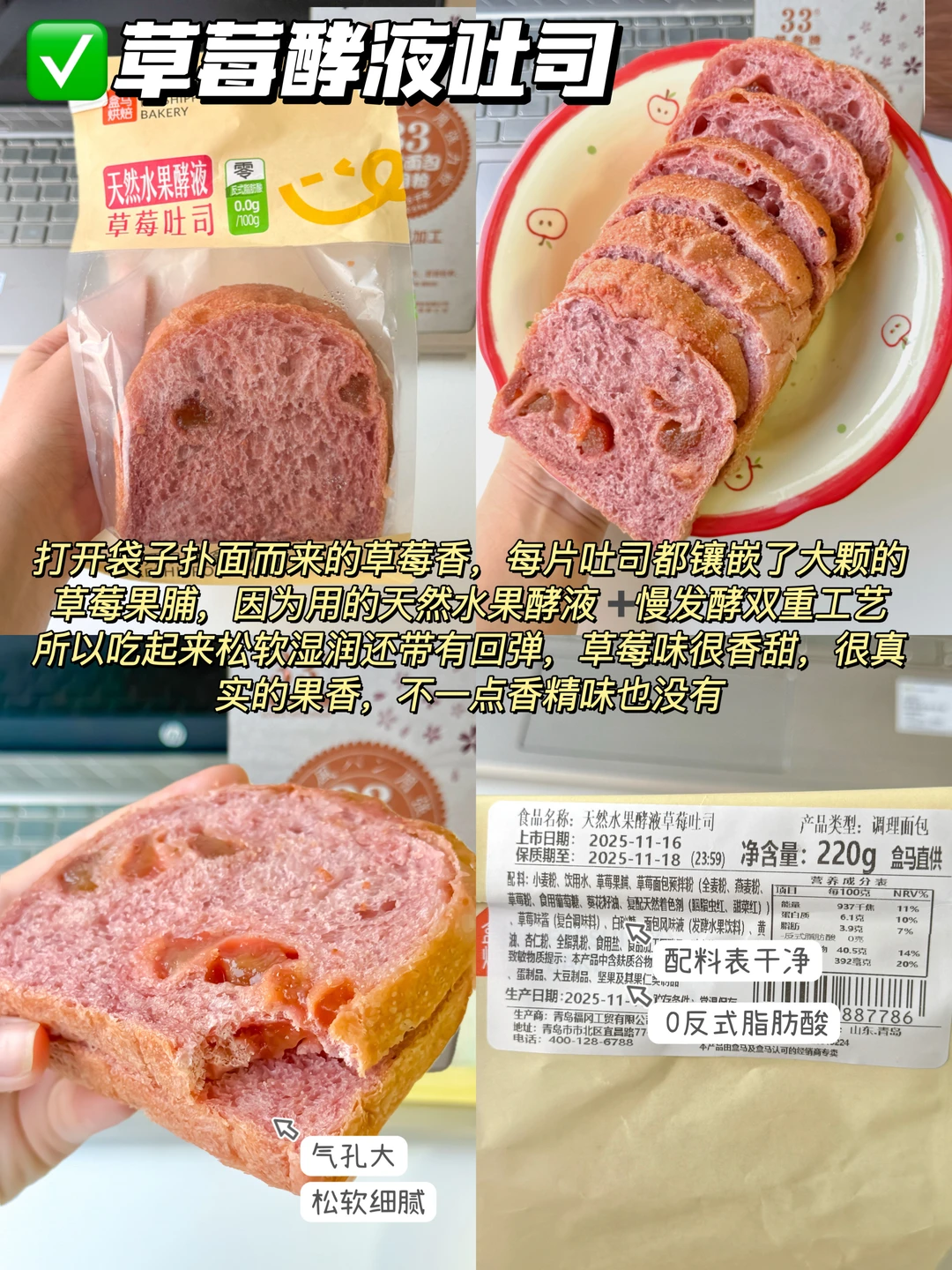哈喽老婆们[害羞R],我是仔仔[doge],盒马最近又出了草莓酵母吐司和0蔗糖荞麦奇亚籽吐司,上一次出的发酵系列每款都很喜欢,炒鸡好奇这次新品口味怎么样,买来浅浅测评一下
