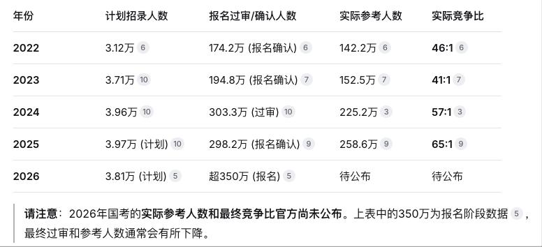研究生报考人数在大幅下降,招生人数却在稳步提升,与此同时考公人数却屡创新高。 2026年高校毕业生总规模为1270万,一直在提高。 相对的2026 年研究生报考人数343万,却在大幅下降。 与此同时2026年考公报名人数却达到了350万,在大幅提高,还是在减少了国考招聘规模的基础上。 相对竞争宽松的考研的热度在下降,已经竞争极为激烈的考公的热度却还在上升,看来国家的经济是越来越好了,大家都想去赚钱,而不是通过考研来逃避了。