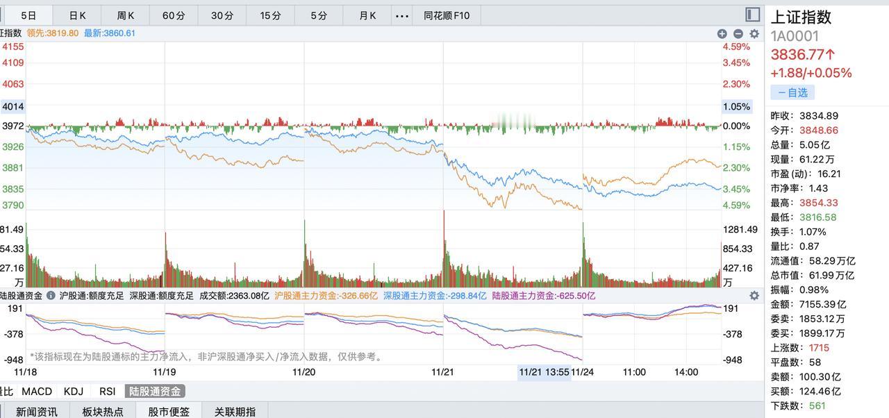 明天的走势将决定本周方向!明天大盘大概率还是处于反弹,反弹的高点在3860点左右,应该是持股的阶段,如果明天继续走弱3800点本周要破,现在实际就是3800点保卫战了,一旦跌破3800点,今年12月份的走势将会更加难看! 还是看好11月份继续上行到3900点以上,明天军工和反制水产仍然是重点,可以继续持有,还有一个方向光刻胶可能迎来新的机会,国产光刻胶取代要加速,这是日本的最强领域,我们必须加快研发速度!