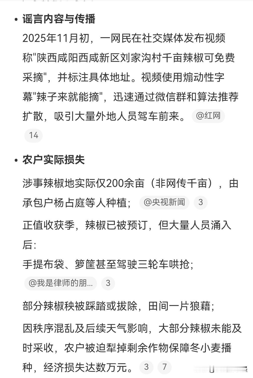 这真是太丧心病狂了。 日前,男子拍视频造谣千亩辣椒随便摘。 结果弄得很多人都去摘辣椒。 最终造成了主人一定的损失。 造谣者已经被抓。 抓的好,一定要严惩这样的人。 造成了这么大的损失。光抓肯定是不够的,要赔偿损失才行。 必须狠狠的罚造谣者。