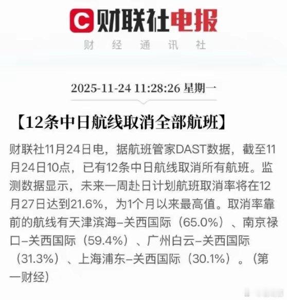 退退退!中日航线现大规模退票潮,刚需出行需早做规划!近日,中日航线出现罕见退票潮,航班管家数据显示已有12条航线全面停飞,近三分之一赴日机票被取消,退票量达新订票量的27倍。其中天津-关西、南京-关西等航线取消率超六成,情况尤为严峻。此次航班大规模缩减,既受旅游淡季与疫情反复叠加影响,也反映出国际航空市场的脆弱性。对于即将赴日的留学生和商务人士而言,当前形势提出了严峻挑战:一方面航线骤减推高剩余航班票价,另一方面经停航线频繁变动增加行程不确定性。特殊时期,出行策略需更加精准。建议刚需旅客优先选择北京-东京等核心城市直飞航班,这类航线运营相对稳定;同时应购买机票变更险,密切关注航司动态,避免因航班调整造成损失。随着冬季出行高峰临近,有计划赴日的旅客更应提早规划,为可能的航线变动留出缓冲空间!