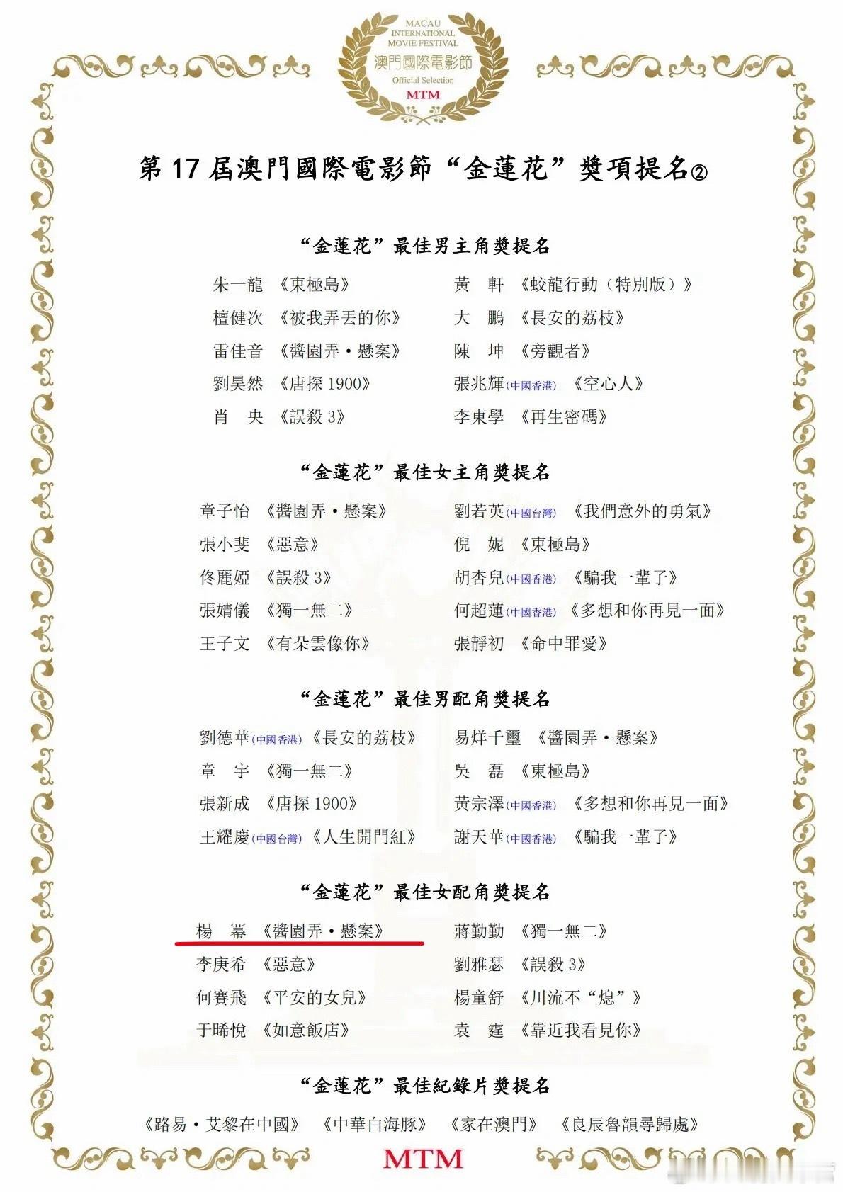 杨幂《酱园弄》提名澳门国际电影节最佳女配角!